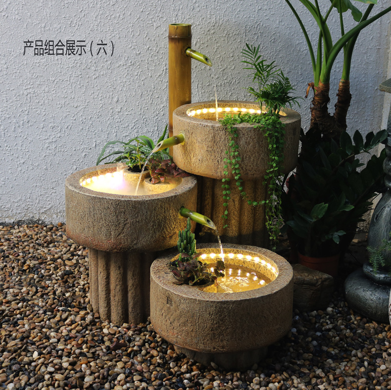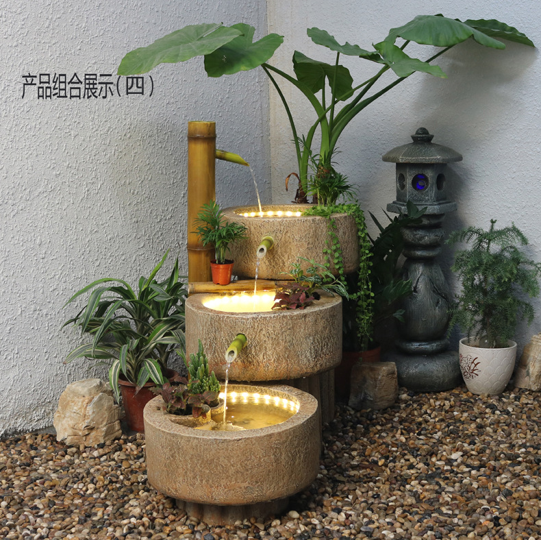 일본식 대나무 목가적 인 선 흐르는 물 장식품 거실 어항 실내 발코니 분수 풍경 클럽 홈 부드러운 옷