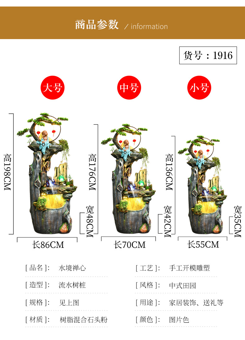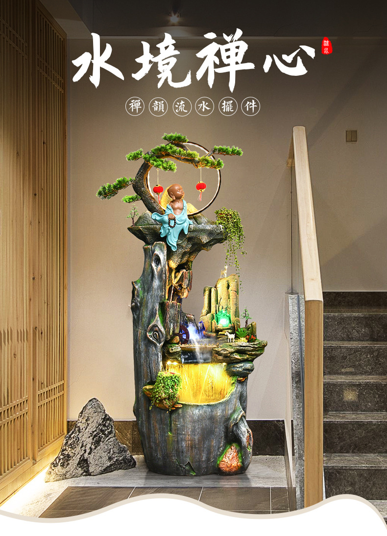 중국식 목가바위 흐르는 물 분수 풍경 부 만들기 뿌리 조각 풍수 바퀴 장식품 거실 발코니 사무실 가습기스토어 가기