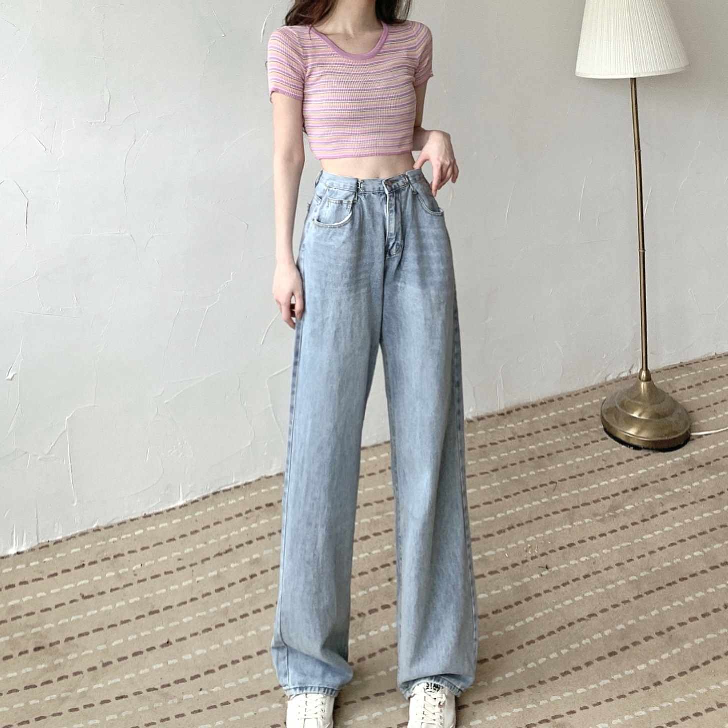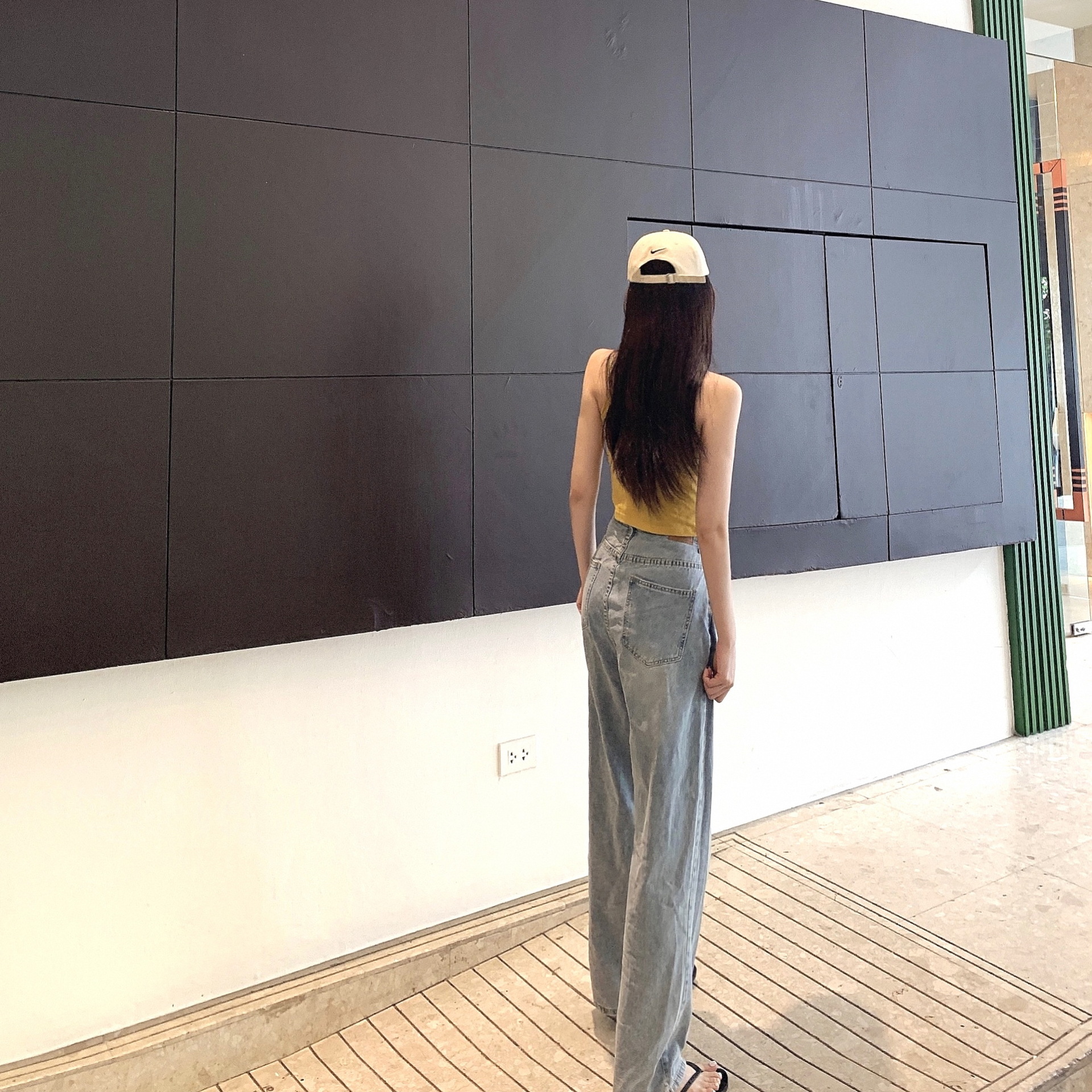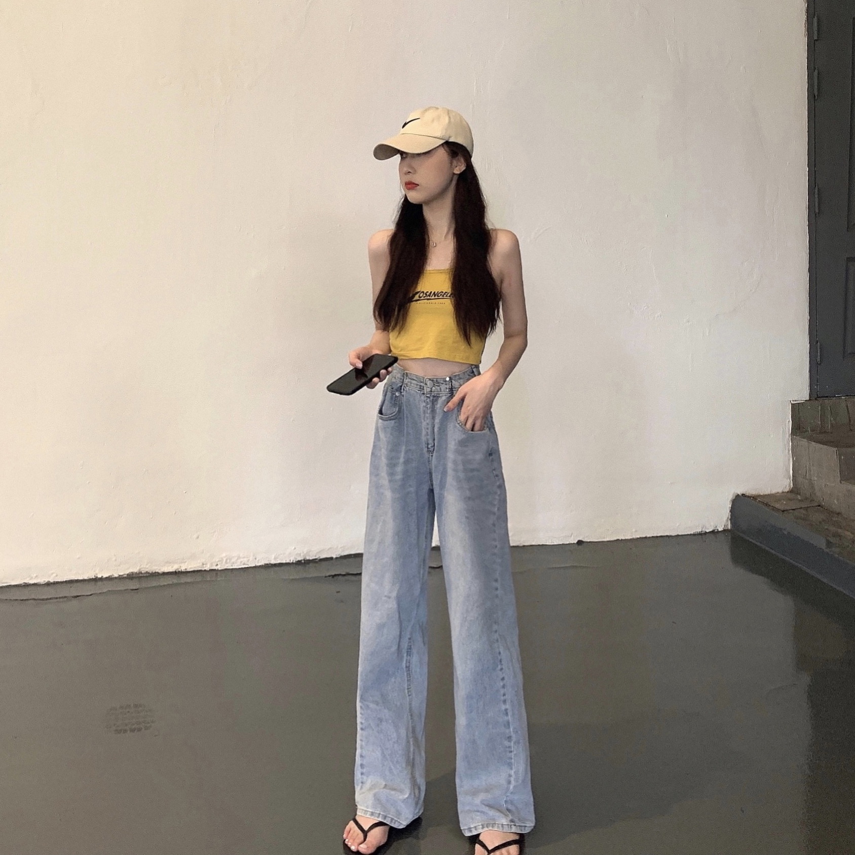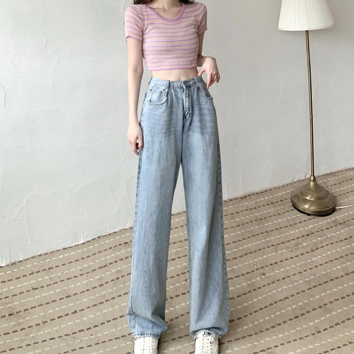 하이 웨이스트 와이드 레그 팬츠 슬림 룩 청바지 여성용 여름 얇은 2023 새로운 느슨한 드레이프 스트레이트 팬츠스토어 가기