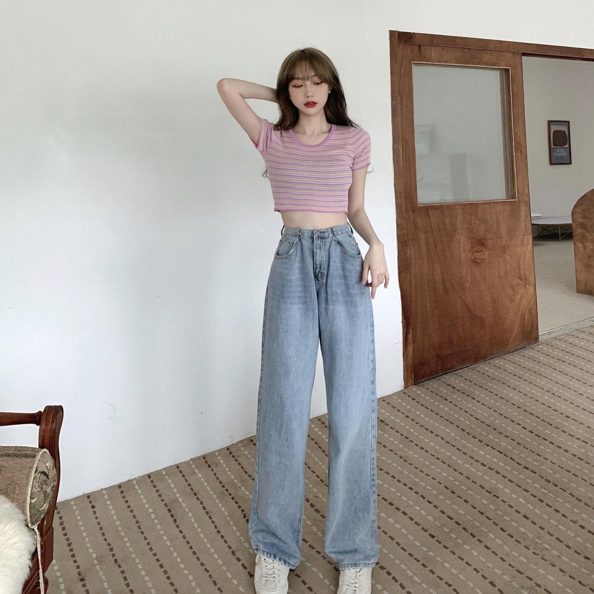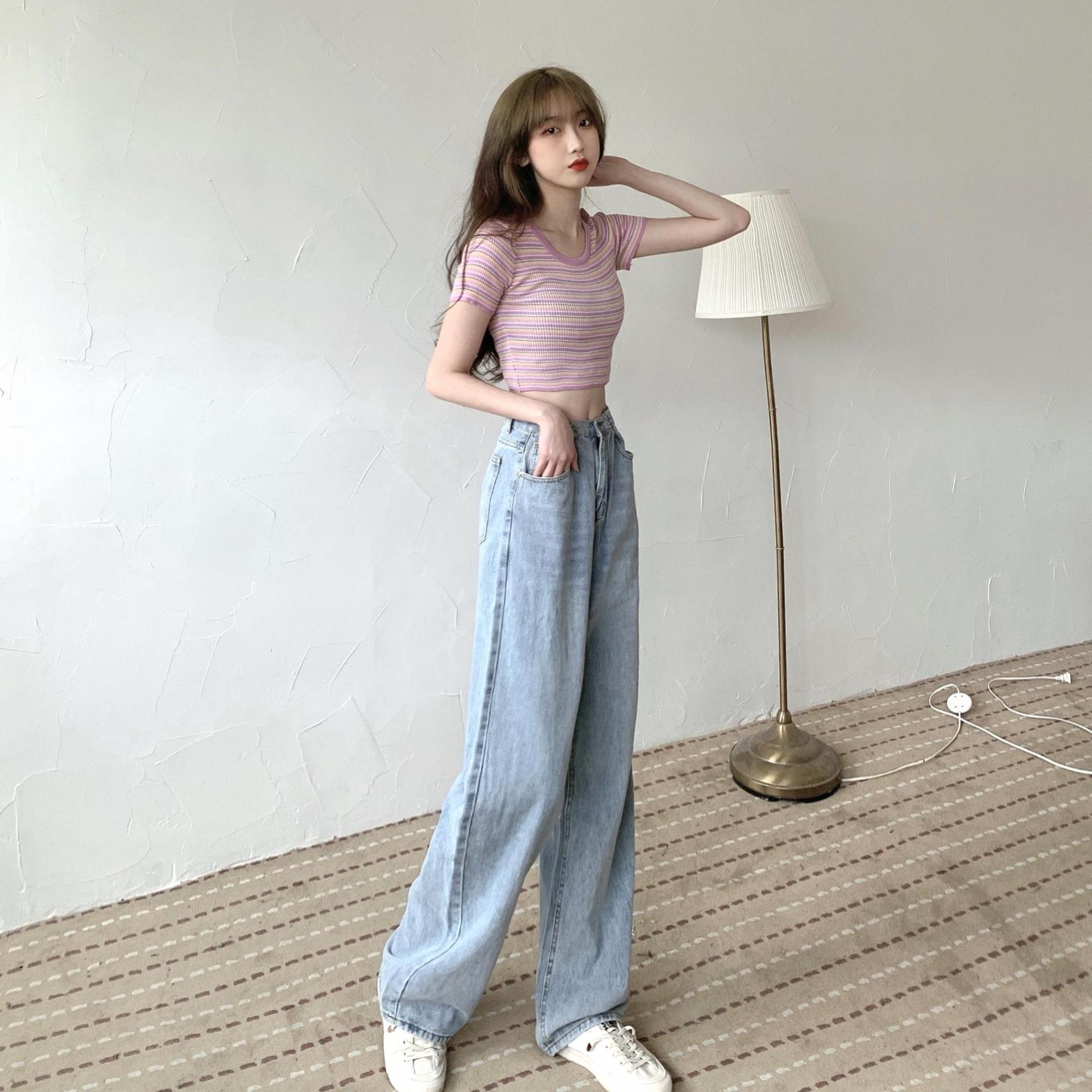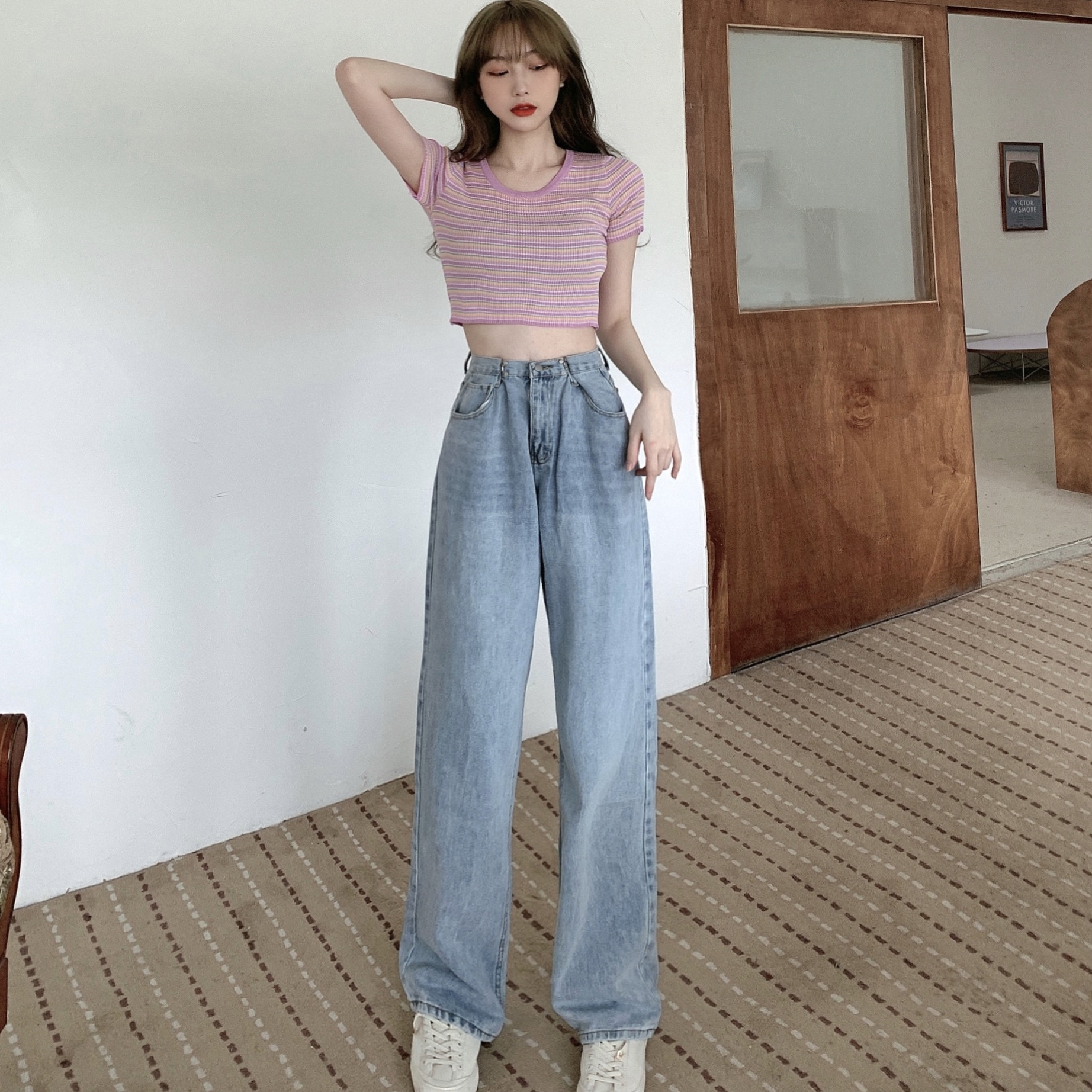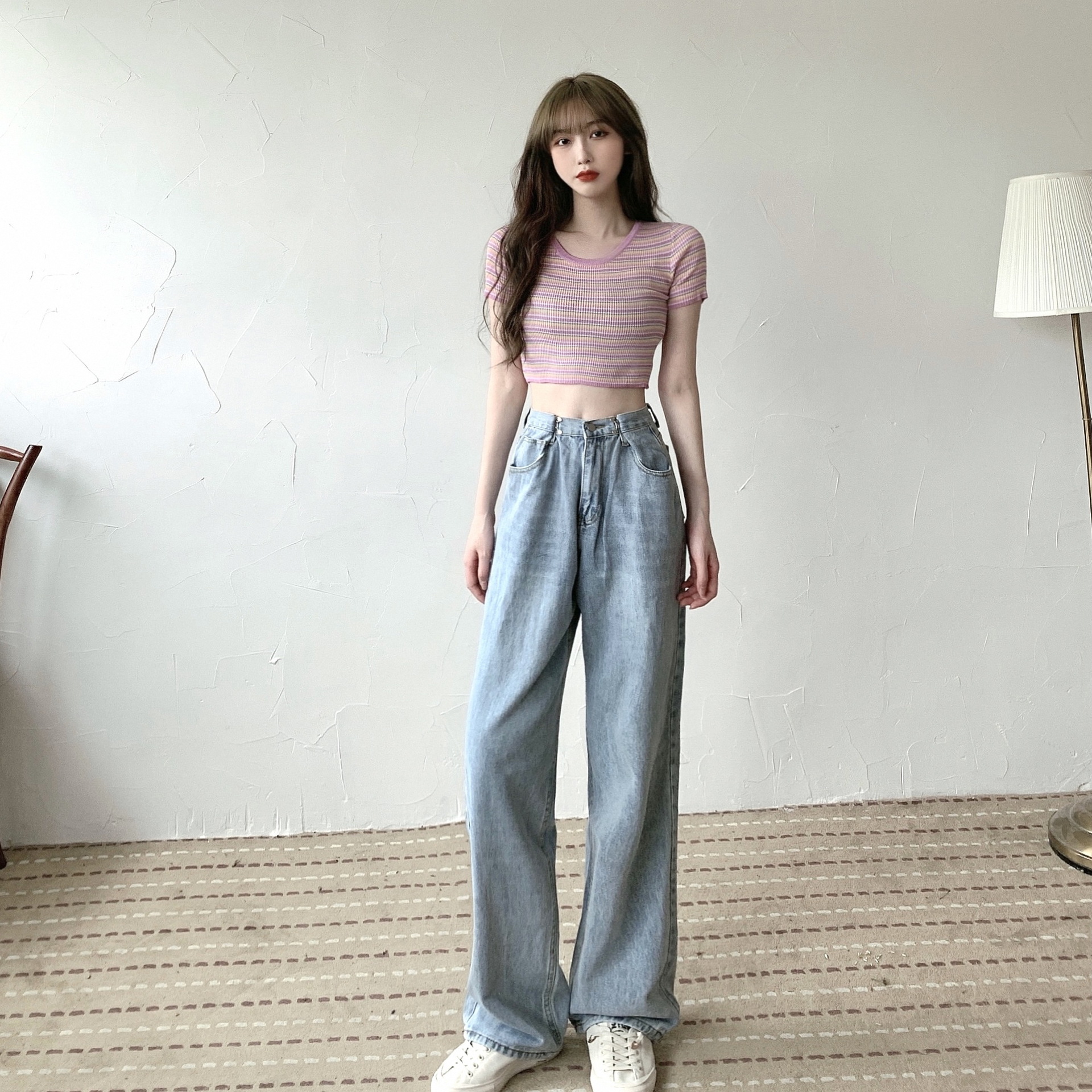 하이 웨이스트 와이드 레그 팬츠 슬림 룩 청바지 여성용 여름 얇은 2023 새로운 느슨한 드레이프 스트레이트 팬츠스토어 가기