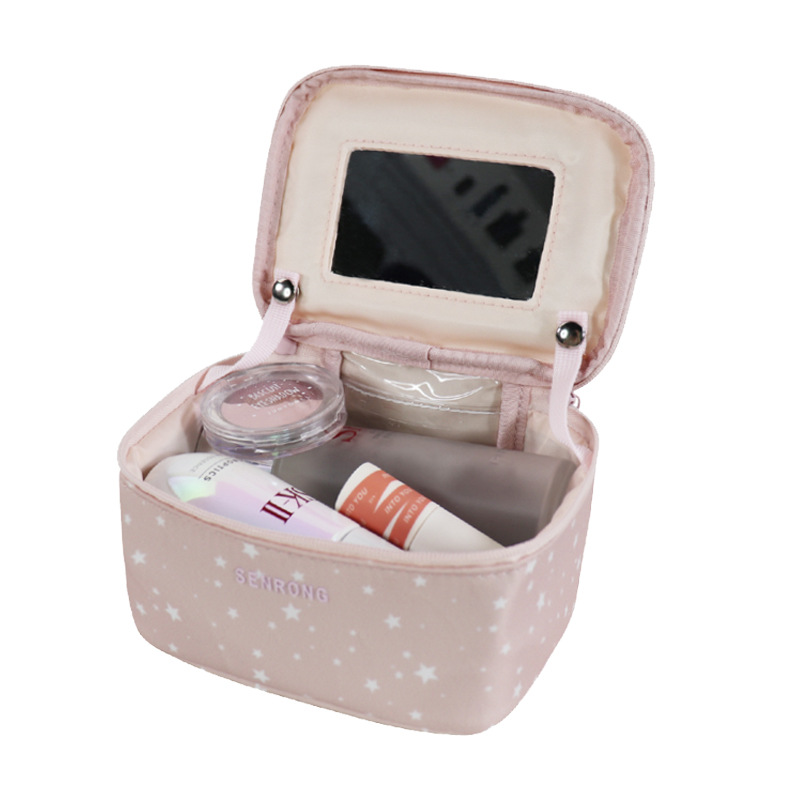 맞춤형 새 꽃무늬 화장품 가방(거울 포함) 인스타 스타일 폴리에스터 세면도구 가방 여행용 휴대용 귀여운 수납 가방 여성용