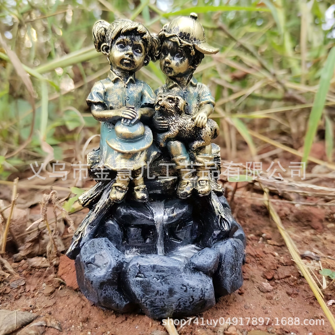 국경 간 아마존 대외 무역 스타일 소년과 소녀 물 장식품 조각 수지 공예 정원 원예 장식품