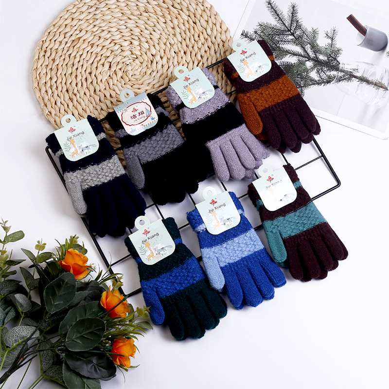 재고 트릴 겨울 혼합 색 손가락 어린이 장갑 자카드 줄무늬 학생 따뜻한 장갑 도매