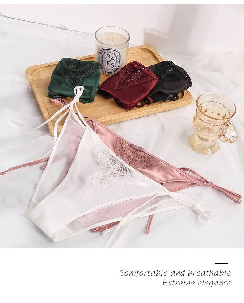 레이스 업 속눈썹 섹시한 레이스 속옷 부드러운 피부 친화적 인 퓨어 코튼 크로치 여성용 재미 로우 웨이스트 걸스 브리프