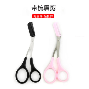 厂家批发 不锈钢眉梳剪 美妆小工具黑色修眉剪刀可拆卸梳子剪眉毛