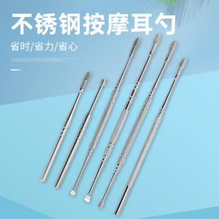 不锈钢按摩耳挖掏耳器采耳工具双头旋转式掏耳勺弹簧耳扒工厂现货