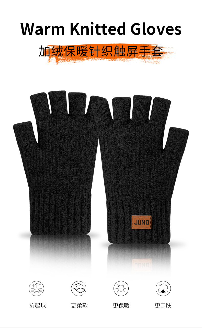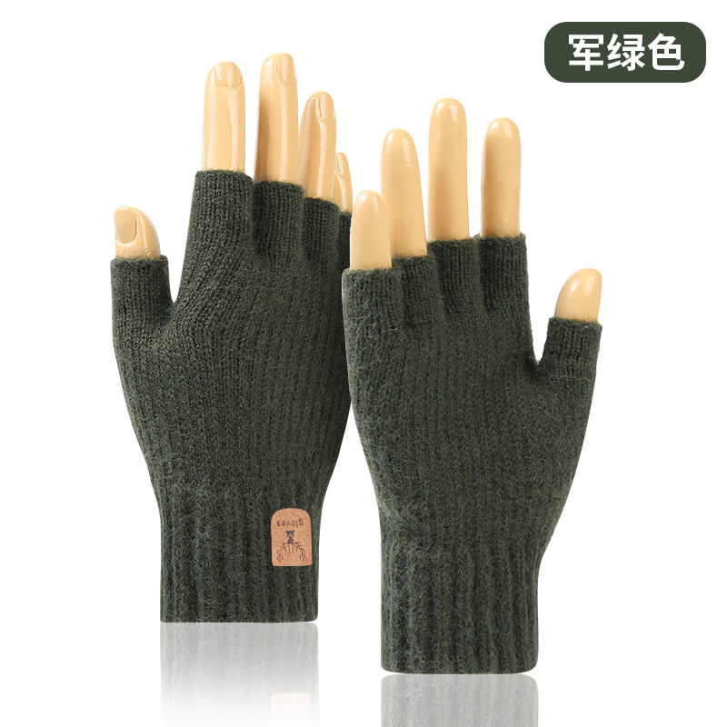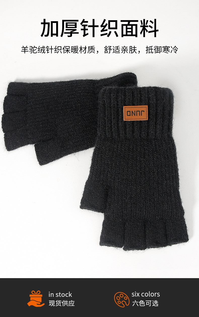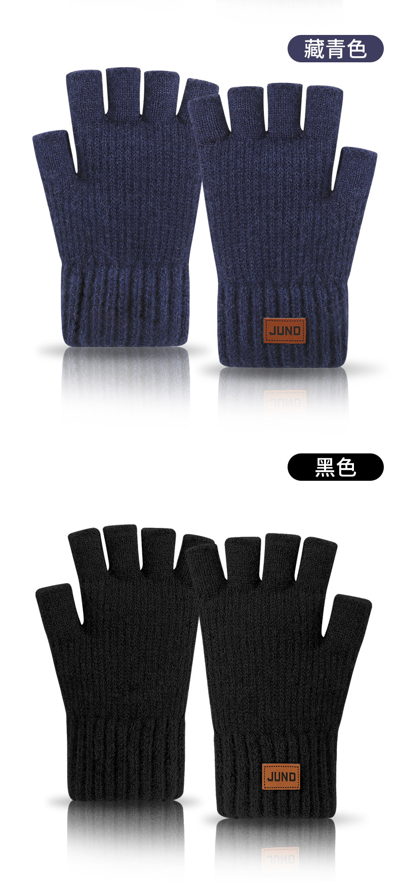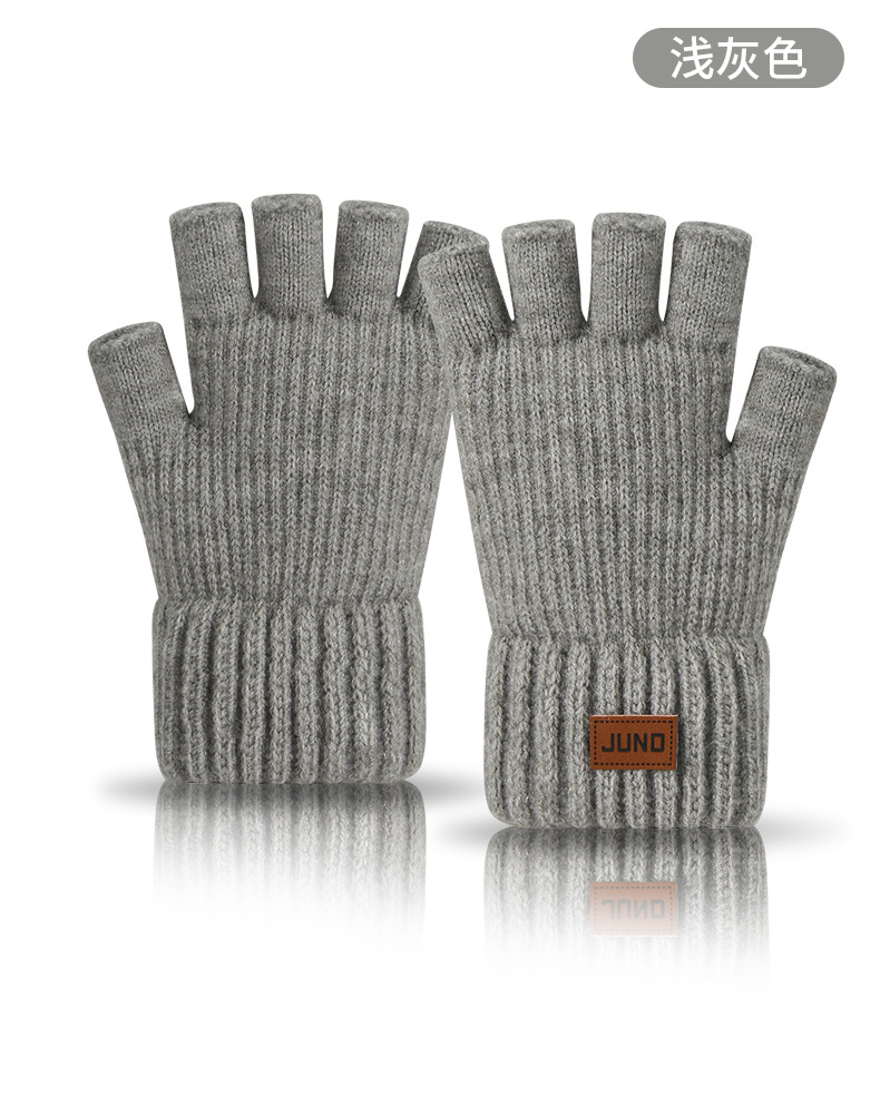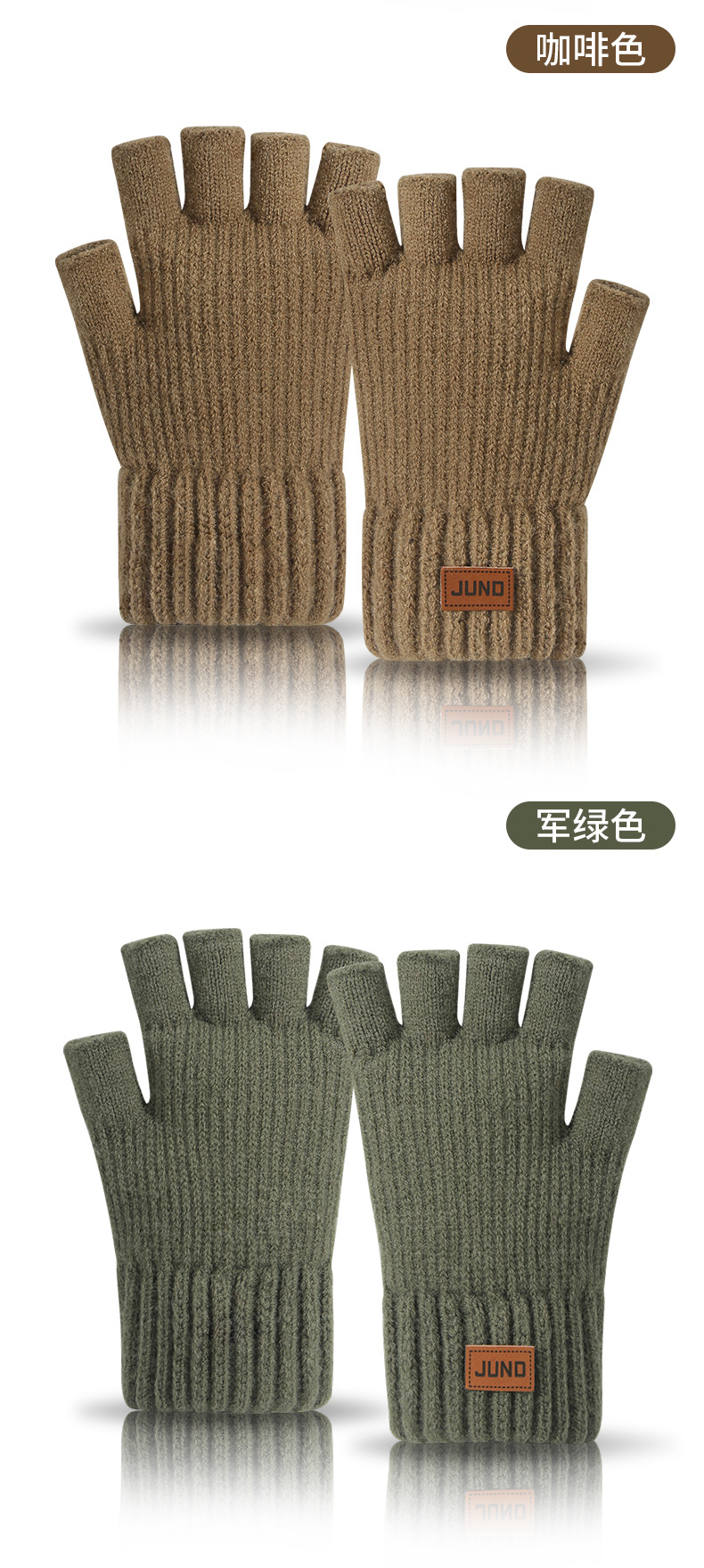 두꺼운 반손가락 장갑, 가을 겨울 벨벳 니트 방한 및 따뜻한 반쪽 글쓰기 울 손가락 없는 장갑 크로스보더