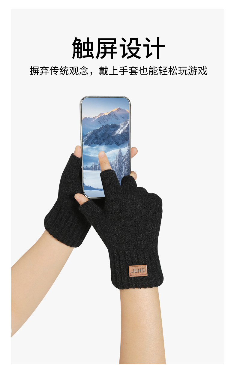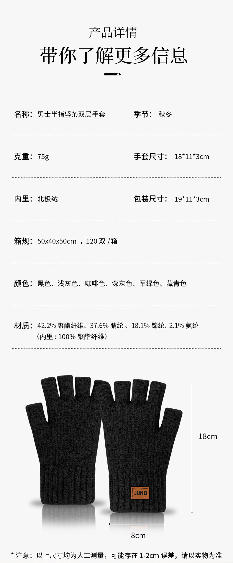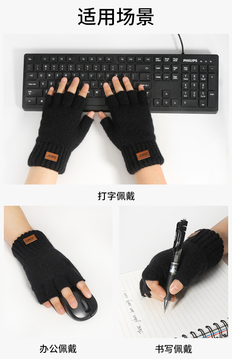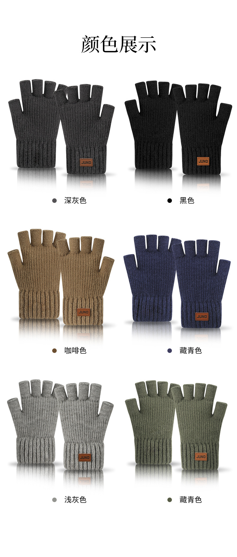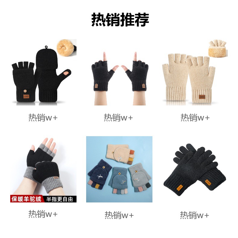 두꺼운 반손가락 장갑, 가을 겨울 벨벳 니트 방한 및 따뜻한 반쪽 글쓰기 울 손가락 없는 장갑 크로스보더