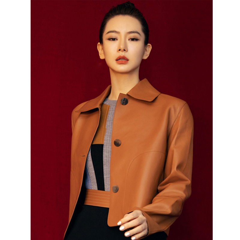 정품 가죽 코트 헤드 레이어 양가죽 코트 여성용 가죽 자켓 짧은 패션 새로운 패션 가을과 겨울 제나라 웨이 동일스토어 가기