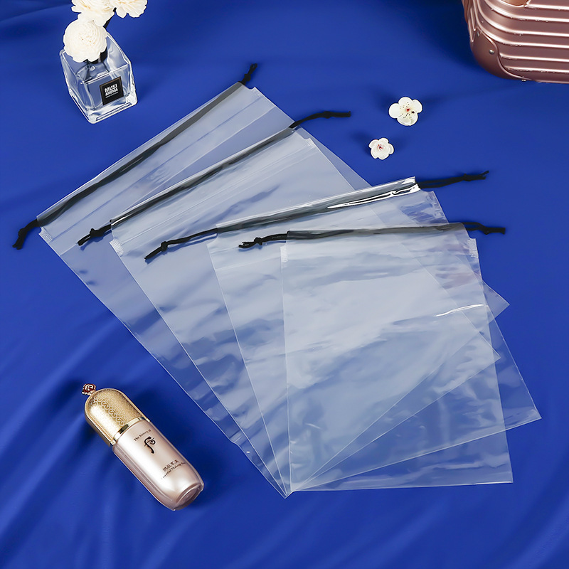 Pe 투명 드로우 스트링 포켓 양말 속옷 의류 포장 가방 여행 플라스틱 보관 가방 로고 인쇄 가능스토어 가기