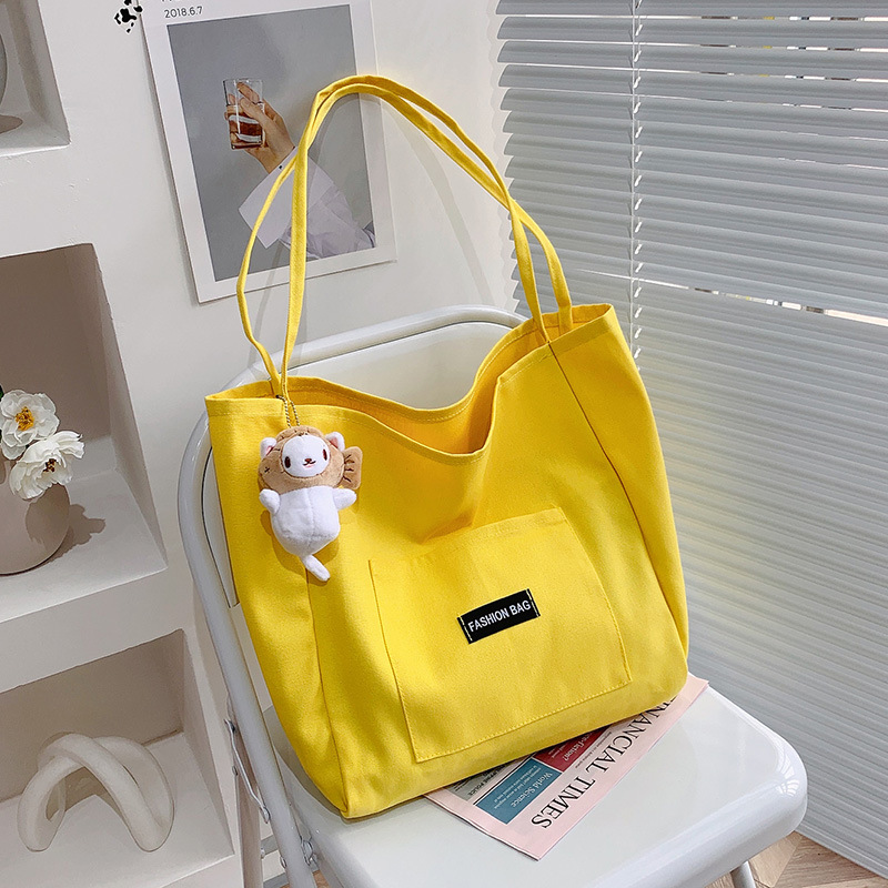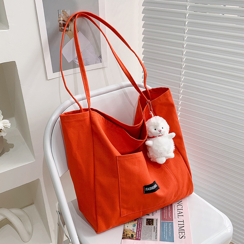 캔디 컬러 한국 스타일 캔버스 가방 여성 캐주얼 모든 매치 심플 대용량 토트백 싱글 숄더 인스 타 그램 스타일 학생 가방