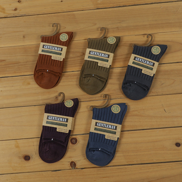 공장 직접 가을과 겨울 폭발 남자 두꺼운 단색 면화 튜브 양말 더블 바늘 수직 곡물 따뜻한 캐주얼 양말 도매