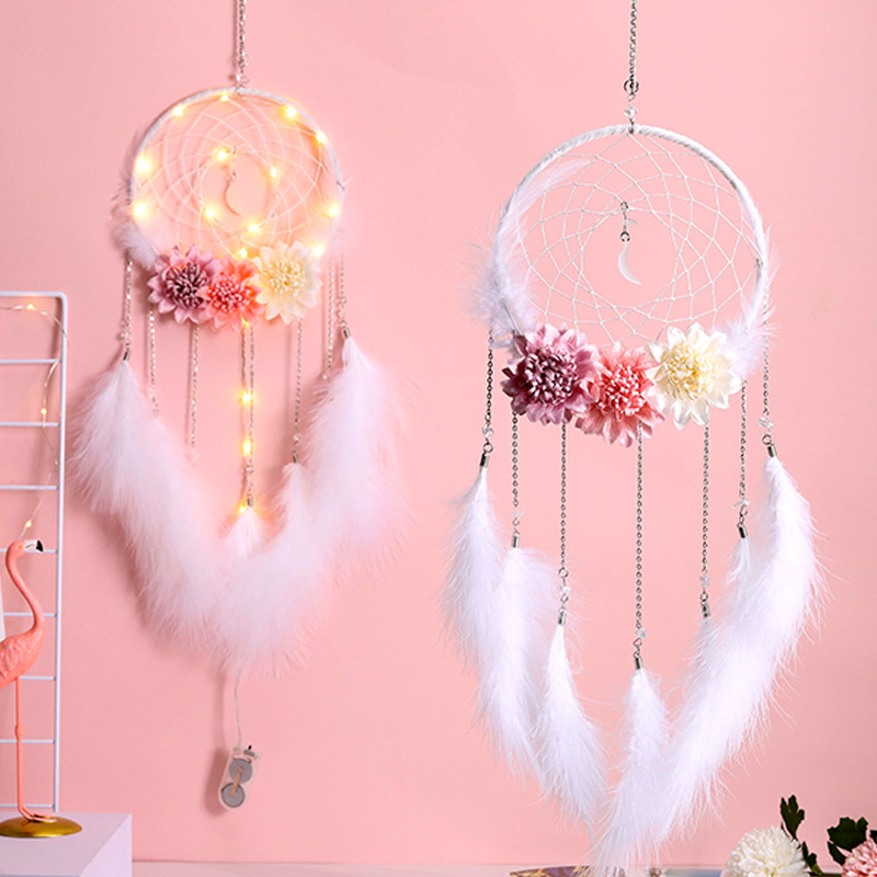 달빛 아래 꽃소리 듣기 꿈잡이 펜던트 침실 소녀 방 장식 창의적인 뜨개질 깃털 풍경종 꿈같은스토어 가기