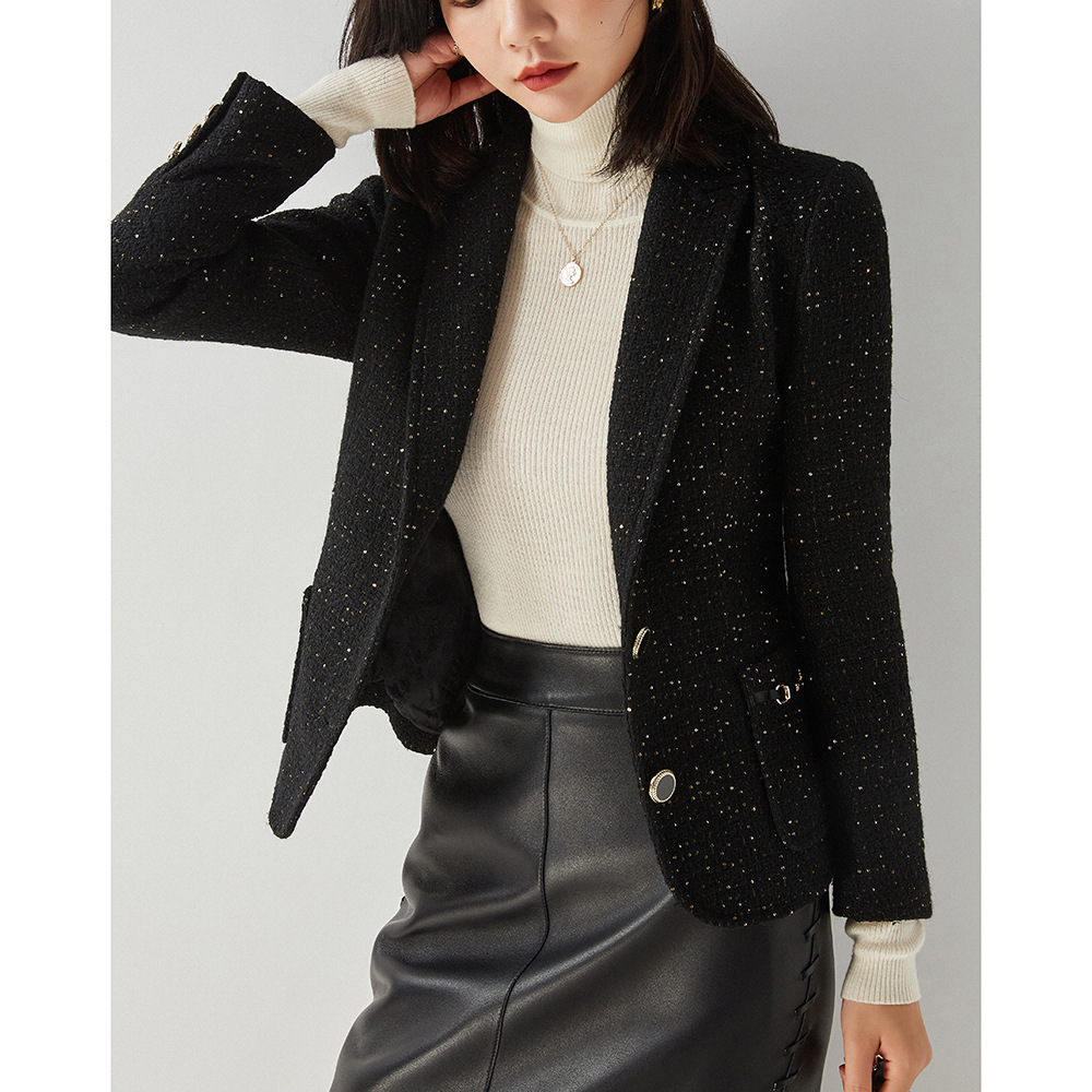 它让每个女孩散发着自由、独立、优雅的精神。存在的意义早已chao越了普通外套的价值。面料适用不同年龄段的女性,经典款式不会过时!放衣柜不论多久都会给你惊喜的感觉!这个款在任何场合都可以撑的起来。精zhi的金丝加亮片均匀的掺杂在面料中。