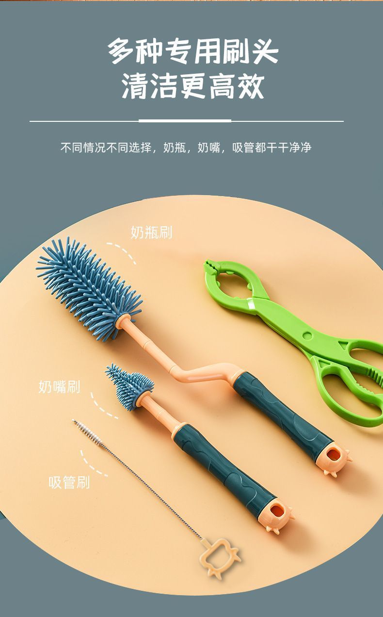실리콘 젖병 브러시 아기 젖꼭지 브러시 흡입 브러시 회전 병 브러시 린스 청소 브러시 청소 브러시 세트