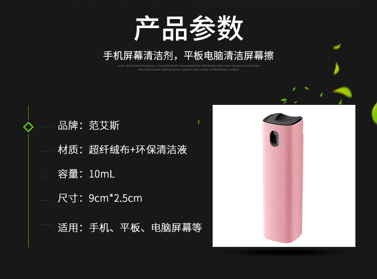 材质:PC+纤维壳+清洁液(表面活性剂+去离子水+抗菌剂)