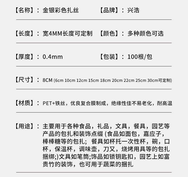 8cm100 골든 타이 인 롤리팝 포장 타이 인 빵 가방 식품 가방 골든 타이 인 컬러 타이 인