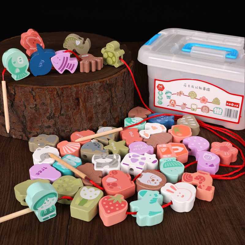 어린이 구슬 조기 교육 교육 장난감 동물 과일 구슬 큰 입자 구슬 로프 빌딩 블록스토어 가기
