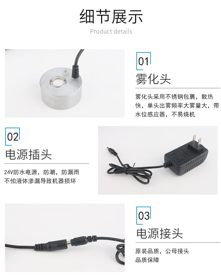 • 알루미늄 합금 분무 헤드 + 전원 공급 장치