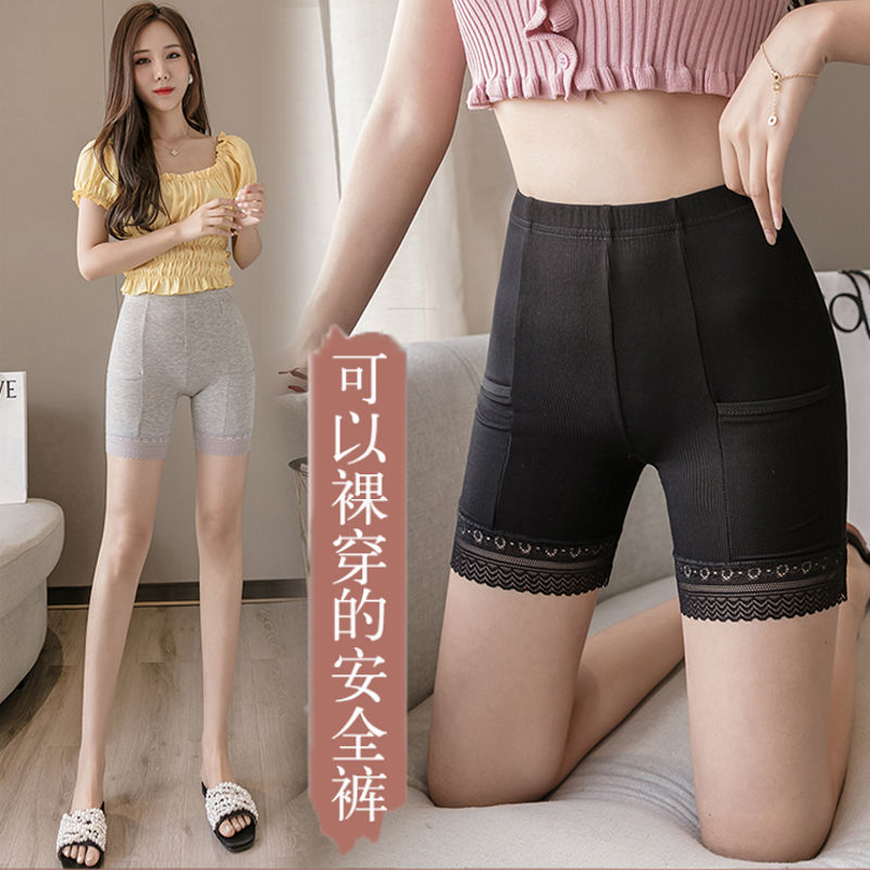 레이스 jk 안전 바지 아이스 실크 레깅스 여성용 안티 라이트 트리플 팬츠 여름 얇은 블랙 안전 바지스토어 가기