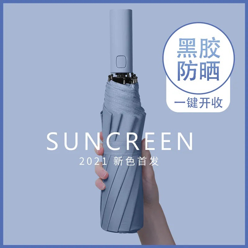 한국 스타일 간단한 3 배 완전 자동 우산 인쇄 로고 접이식 더블 써니 우산 비닐 양산 맞춤형 양산 우산스토어 가기