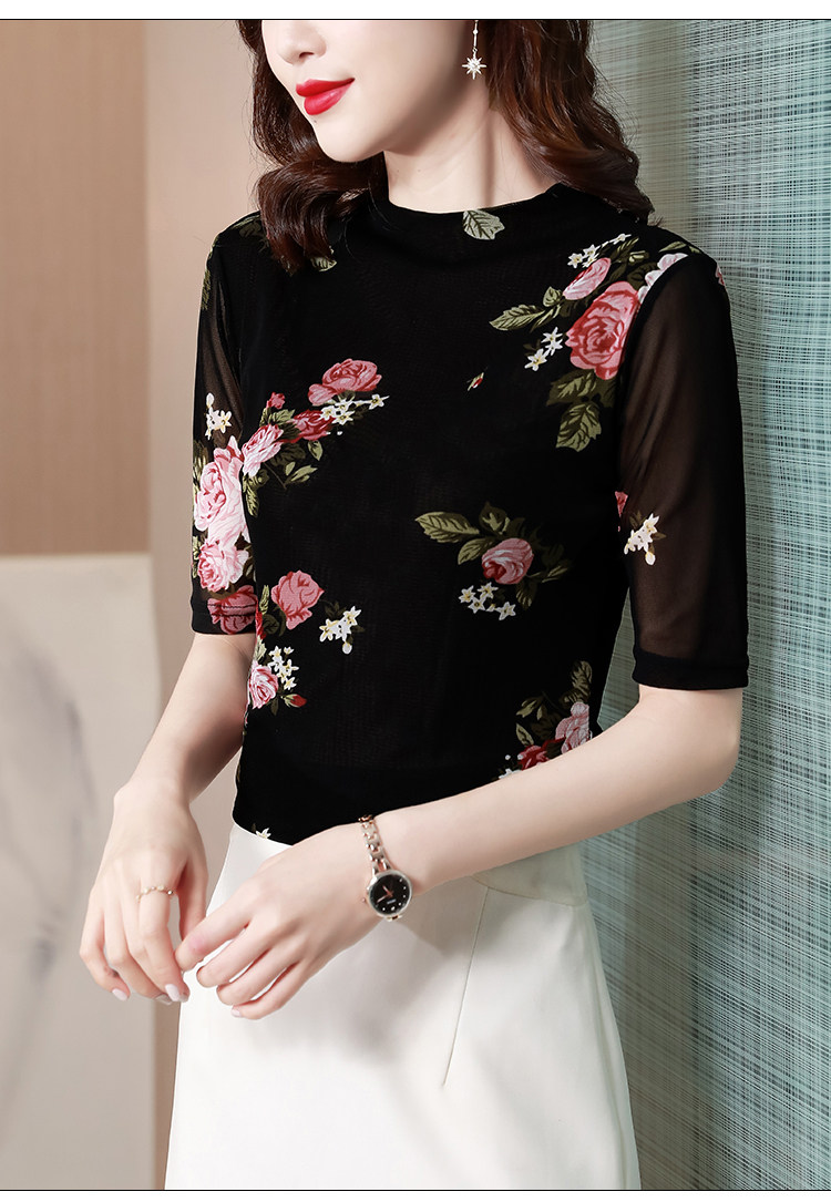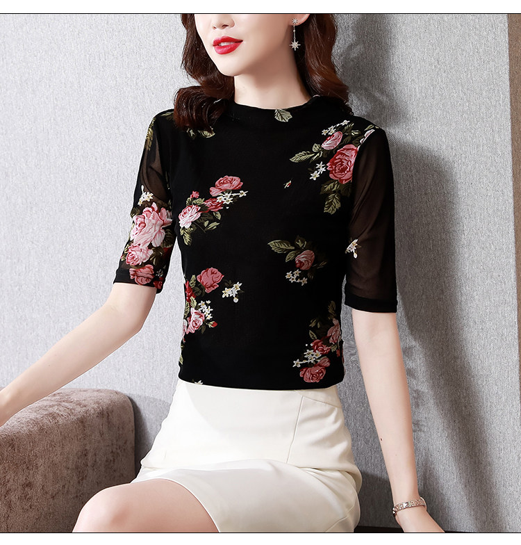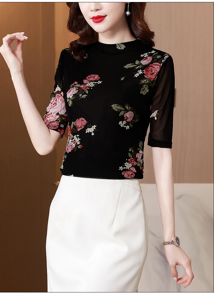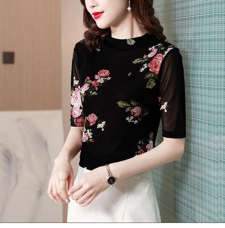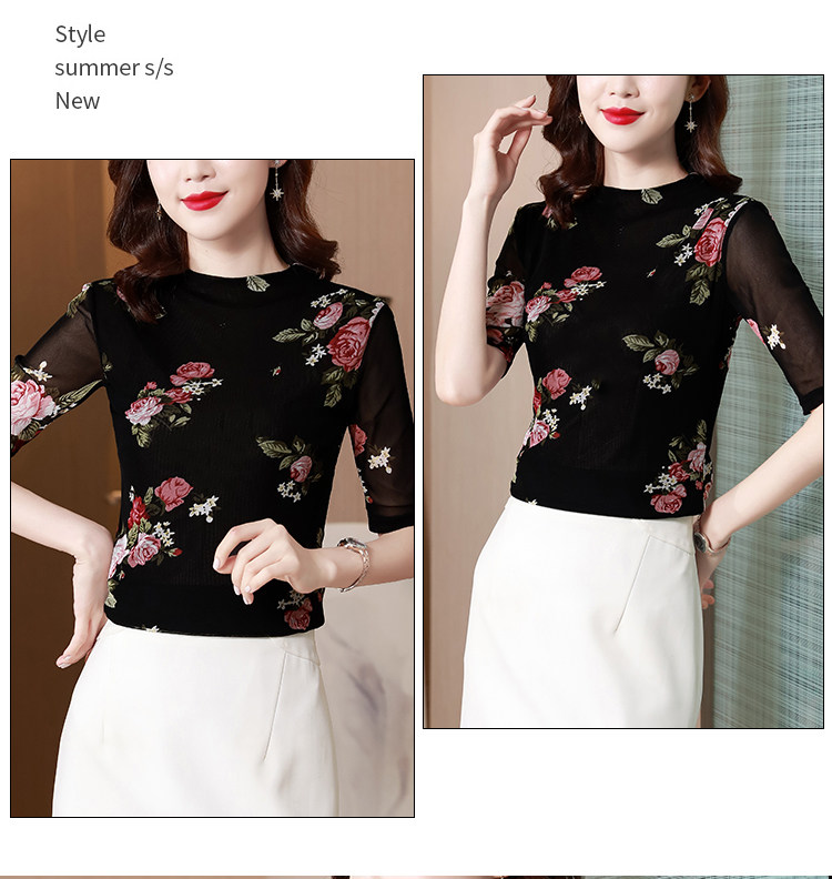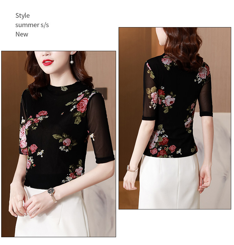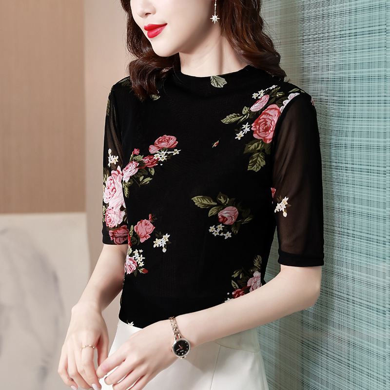 스팟 프린트 보텀 셔츠 여성 반소매 2021 봄과 여름 새로운 외국 스타일 슬림 소형 셔츠 탑 도매