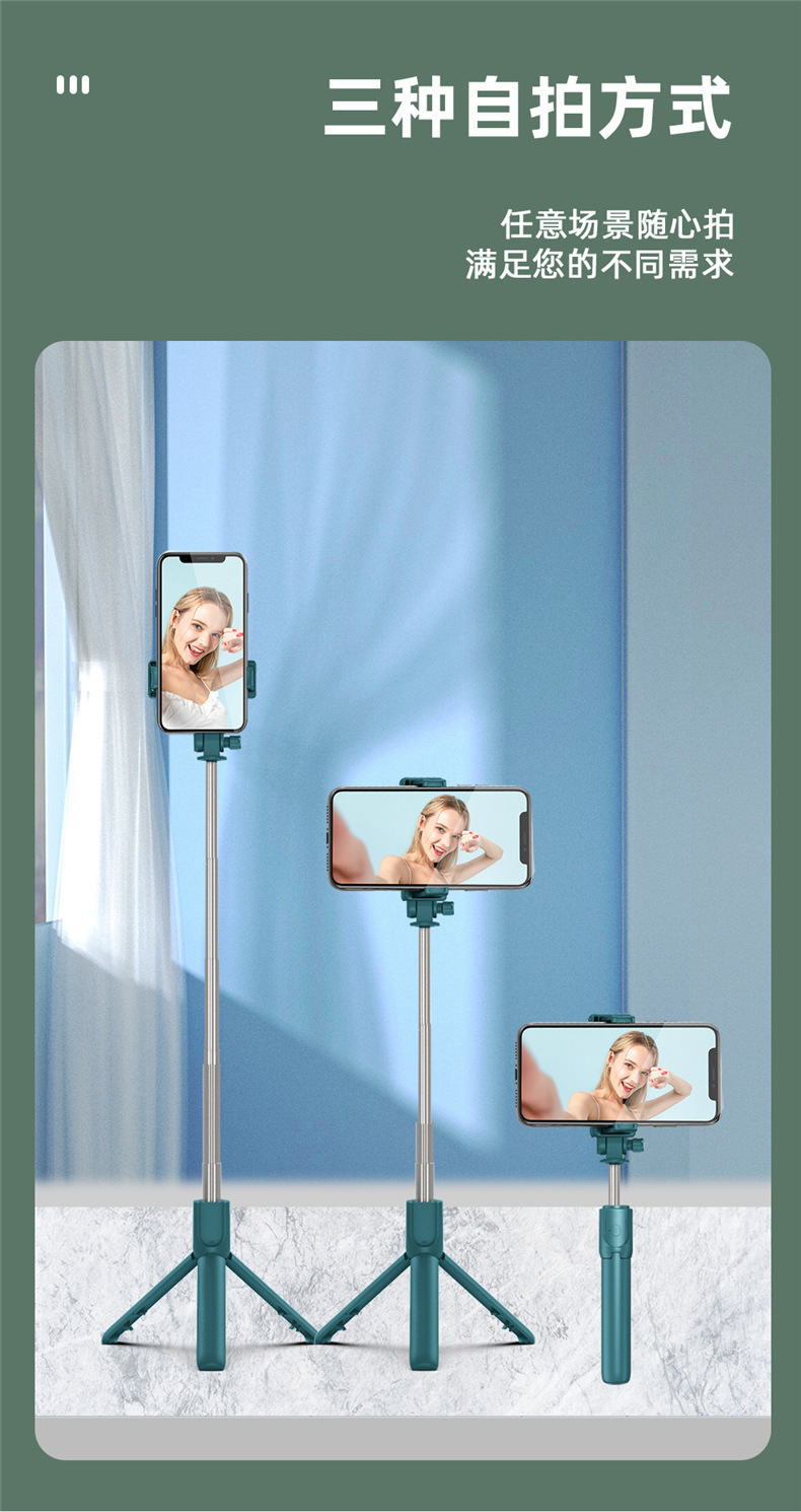 R1 휴대 전화 블루투스 셀카 스틱 통합 필 라이트 라이브 삼각대 휴대용 텔레스코픽 유니버설 셀카 유물