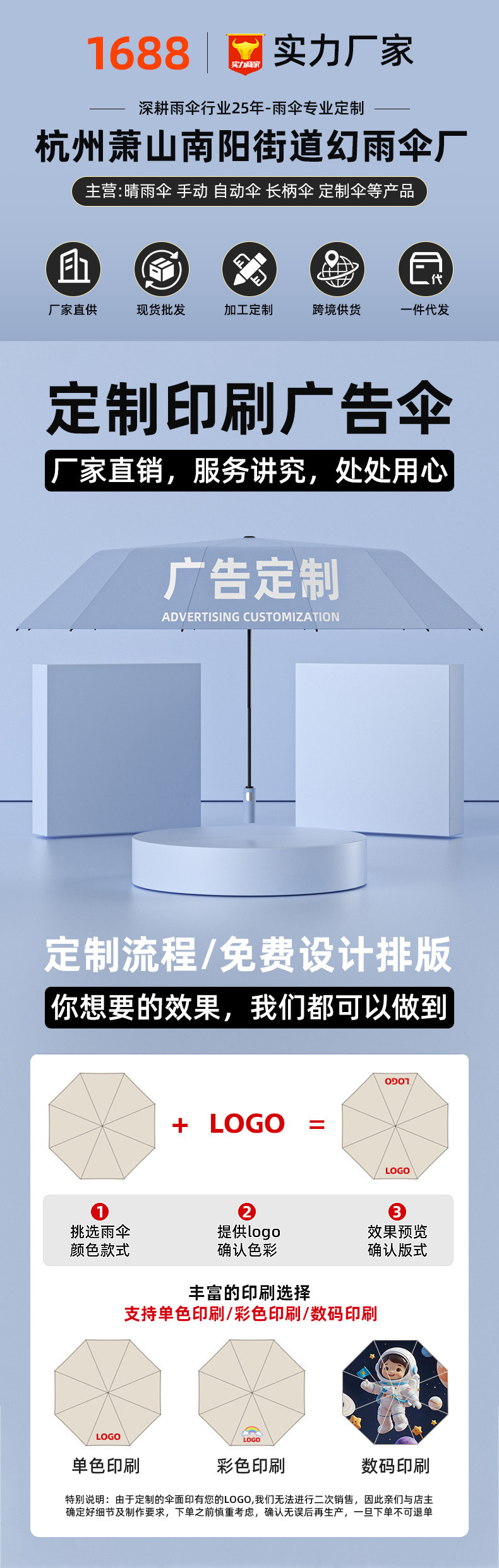 • 7K 실버 접착제 우산-인쇄 가능한 광고 우산 임의의 색상