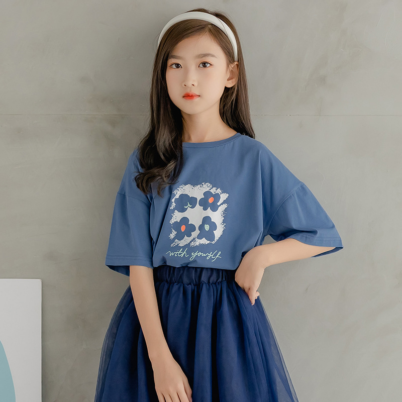 아동 의류 도매 2023 여름 새로운 CUHK 한국어 버전 반팔 세트 소녀 여름 서양식 거즈 스커트 투피스 세트스토어 가기