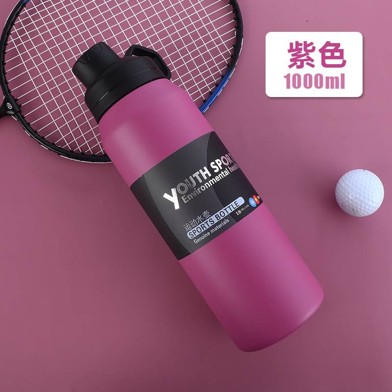 대용량 야외 스포츠 주전자 304 스테인레스 스틸 보온병 컵 휴대용 등산 피트니스 사이클링 물 컵 1000ml