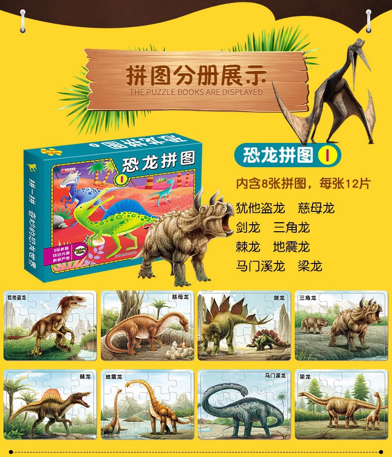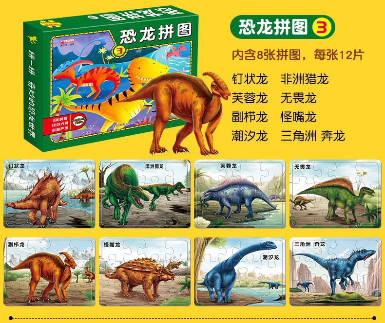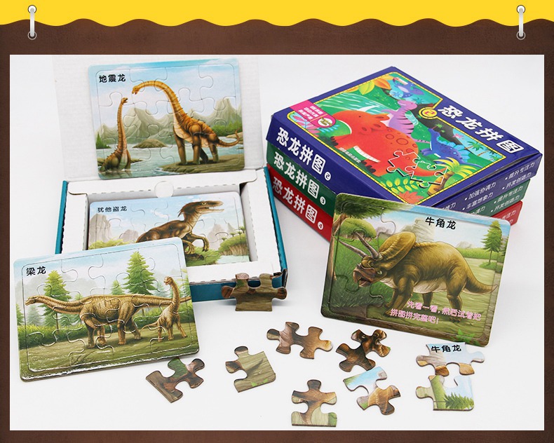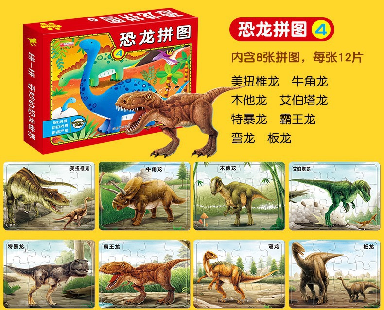 공룡 퍼즐 4 상자 2-6 세 아기 퍼즐 장난감 카드 공룡 세계 템플릿 교육 완구 도매스토어 가기