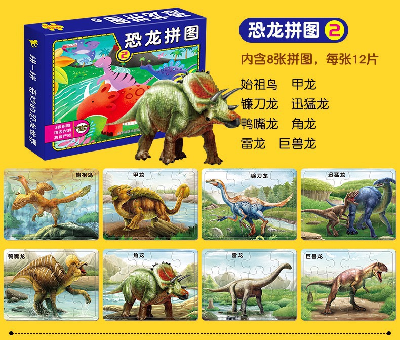 공룡 퍼즐 4 상자 2-6 세 아기 퍼즐 장난감 카드 공룡 세계 템플릿 교육 완구 도매