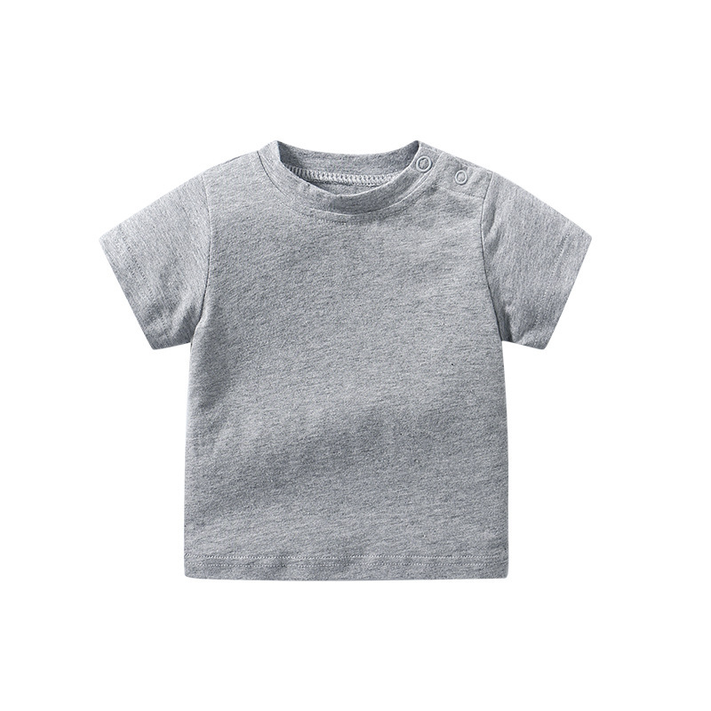 여름 아기 크루넥 어깨 버클 반팔 티셔츠 소년과 소녀 아기 코튼 탑 흑백 단색