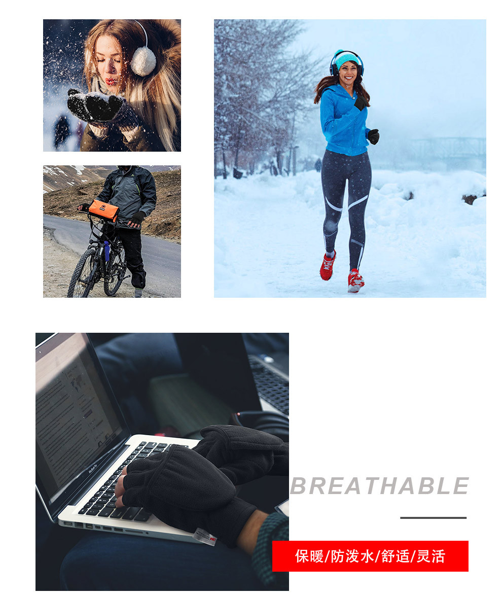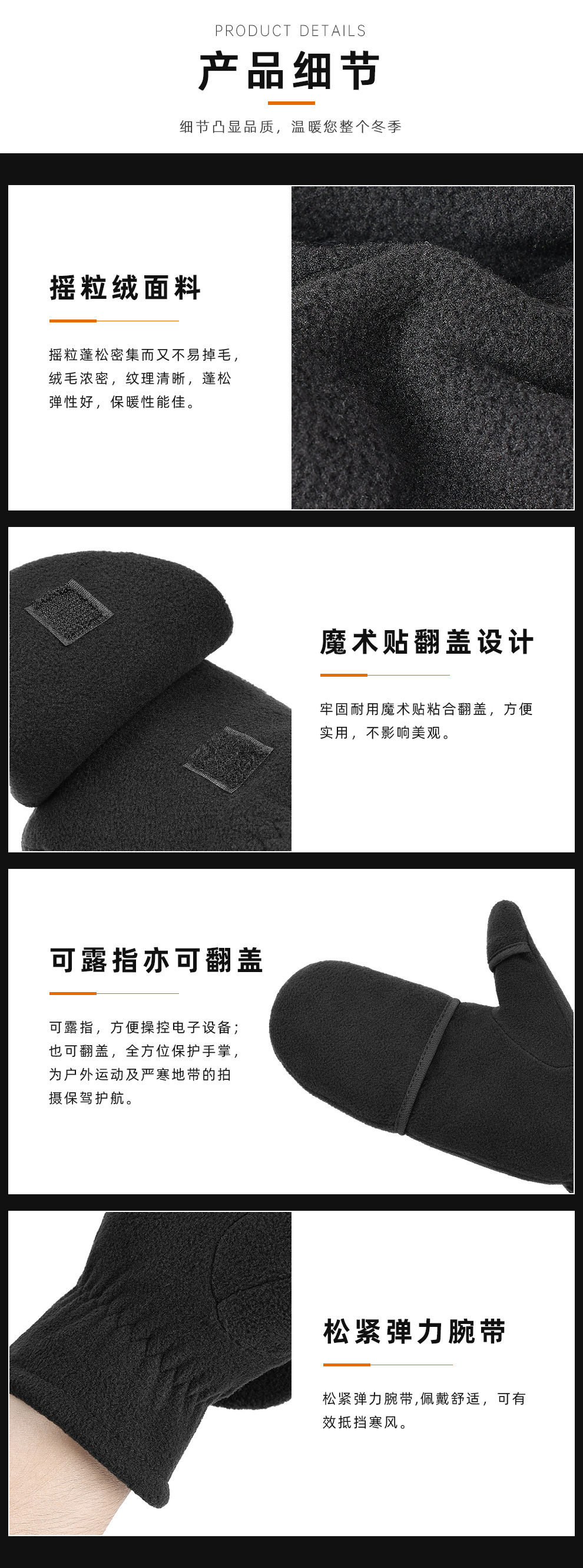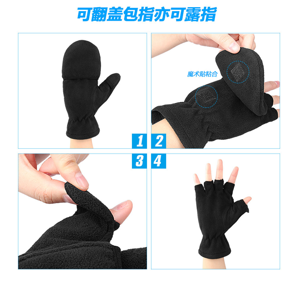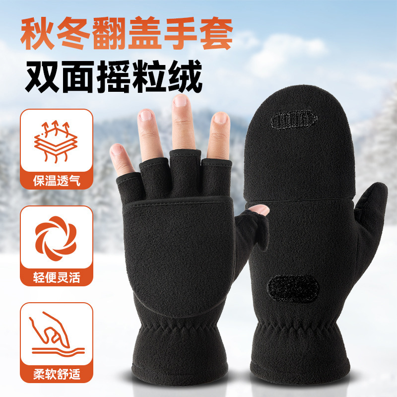 즉시 출고 가능 가을 겨울 장갑, 손가락 노출형 이중 레이어 두꺼운 플리스 안감 방풍 아오제 크로스보더 플립형 보온 장갑