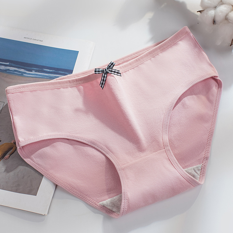2023 새로운 브리프 숙녀 면 통기성 중간 허리 소녀 단색 얇은 통기성 활 속옷스토어 가기
