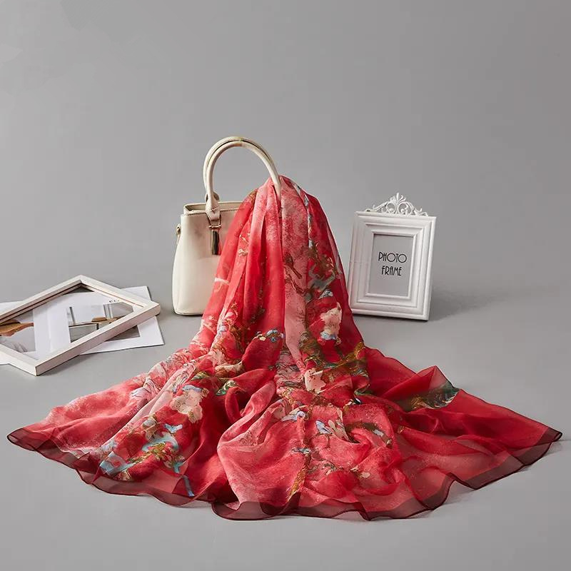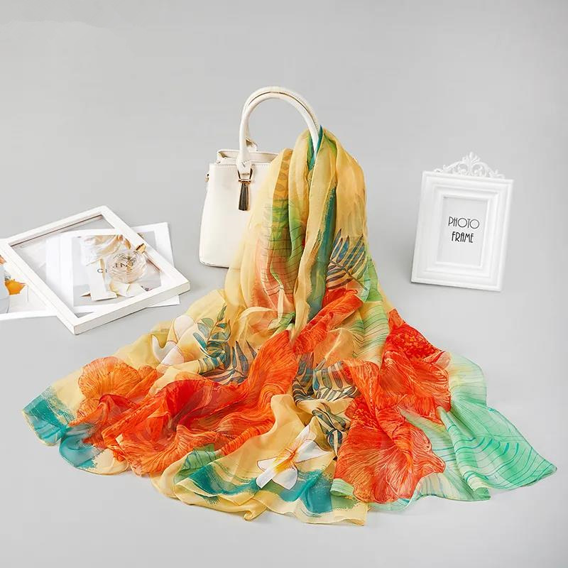 2021 New Yourou 실크 스카프 여성용 여름 자외선 차단제 실크 스카프 여행 비치 스카프 긴 가을 스카프 라이브 폭발