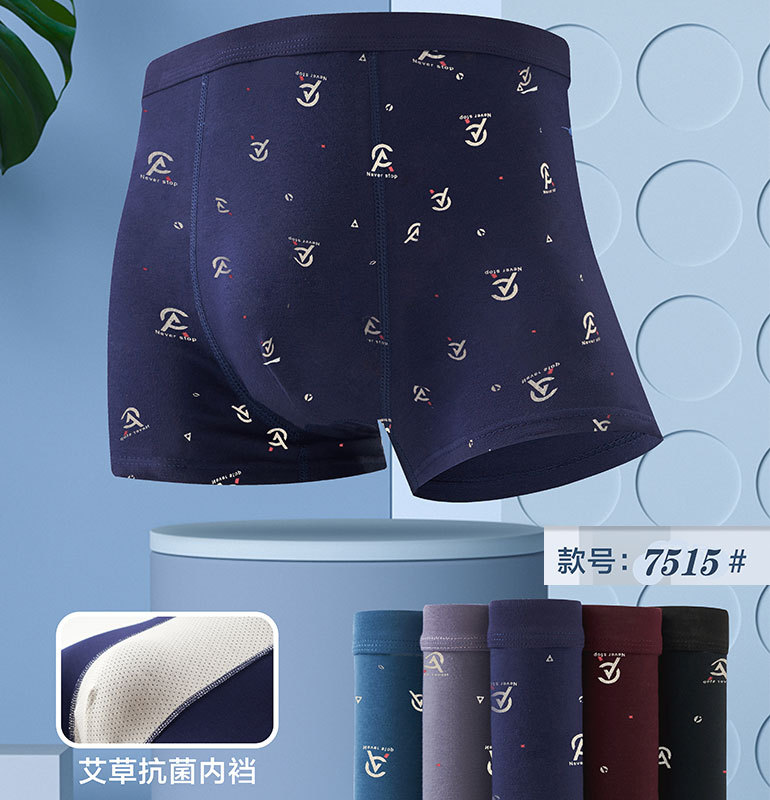 1 특별 제공 남성 순면 복서 속옷 시리즈 미드 웨이스트 순면 솔리드 컬러 프린트 복서 팬츠 남성 화애생스토어 가기