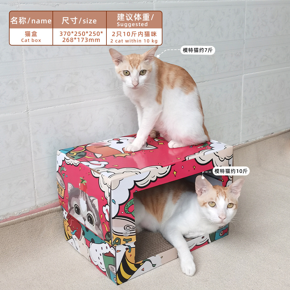 일-아마존 고양이 둥지 고양이 집 접이식 운송 일본 바람 고양이 스크래치 상자 골판지 고양이 스크래치 보드-빨간 고양이 얼굴스토어 가기