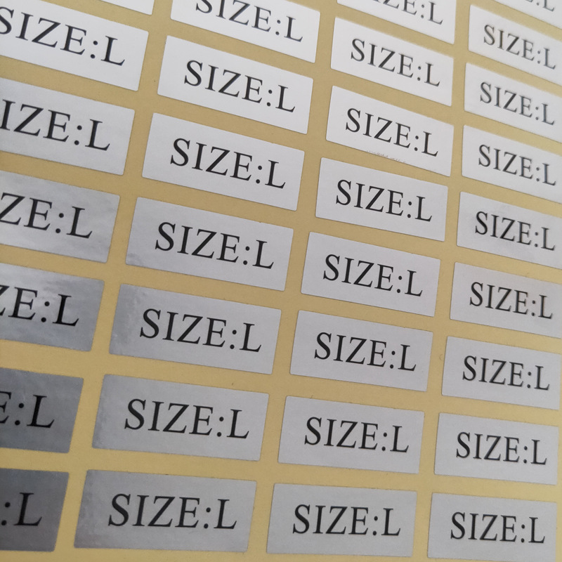 재고 크기 스티커 S/M/L/XL 코드 번호 스티커 바보 실버 종이 크기 의류 크기 라벨 지원 사용자 정의