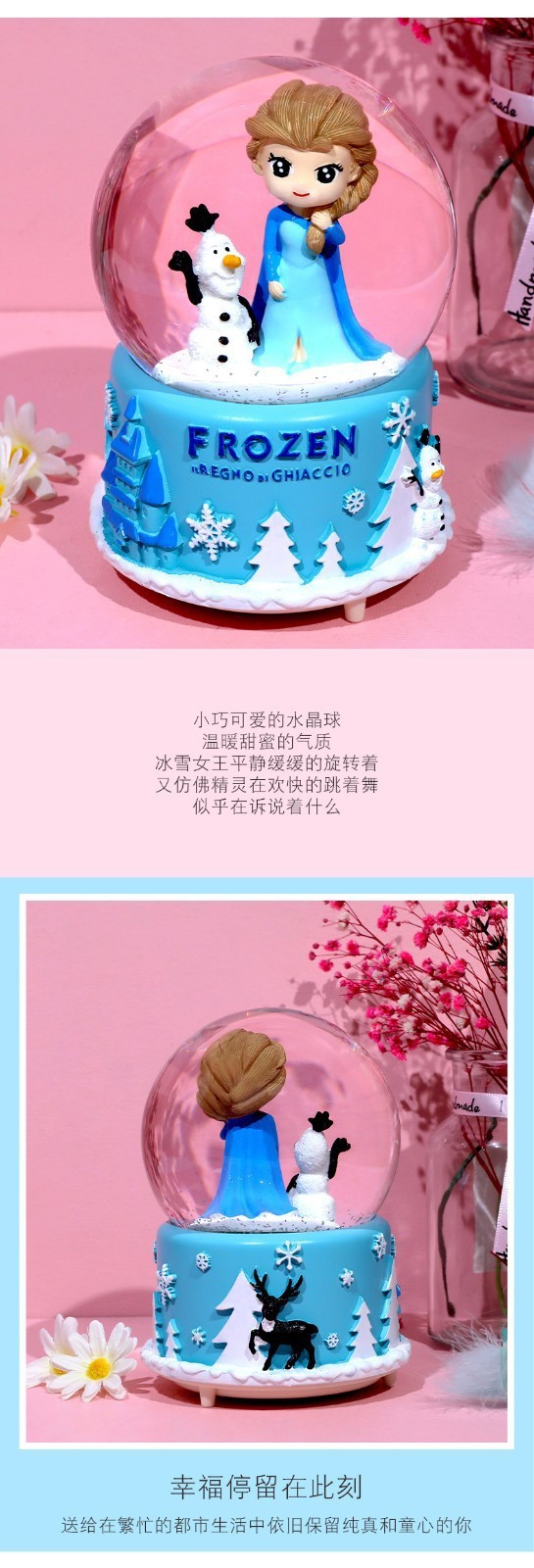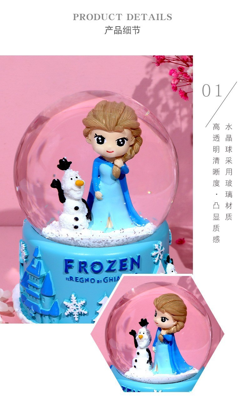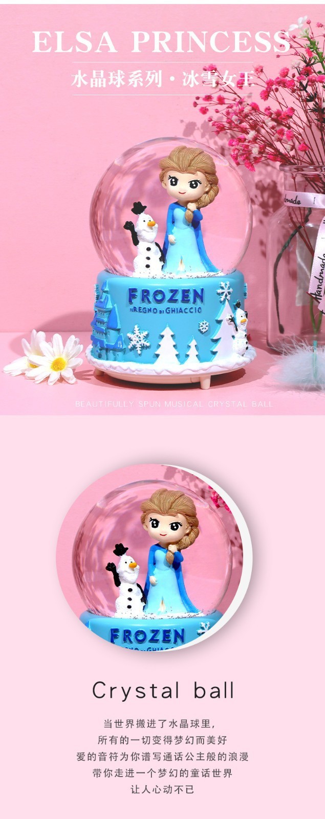 홈 크리 에이 티브 프린세스 엘사 뮤직 박스 크리스탈 볼 수지 공예 장식품 자동 눈 회전 공장 용품스토어 가기