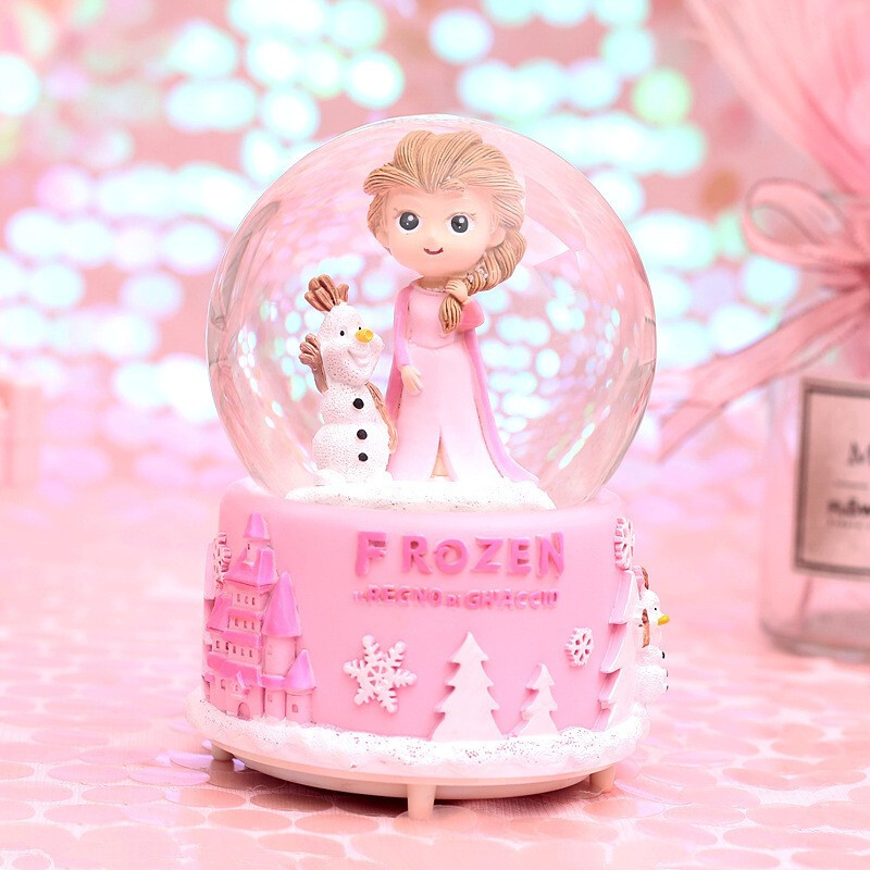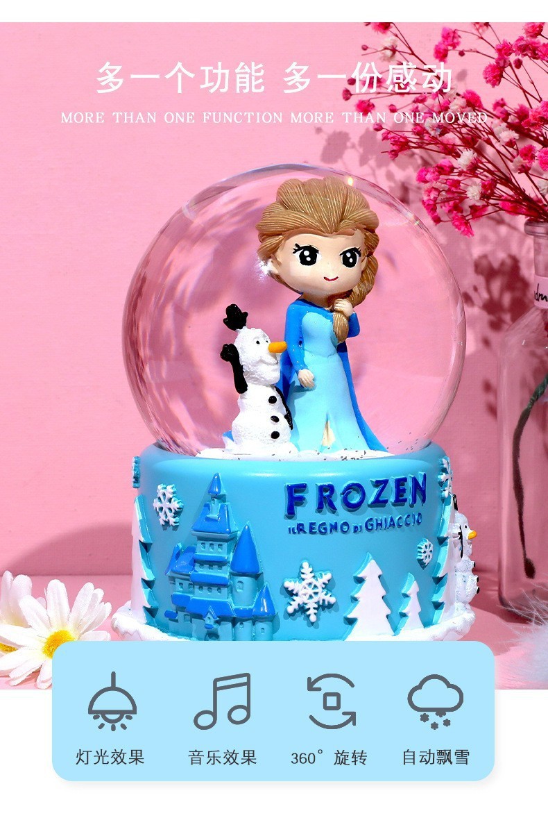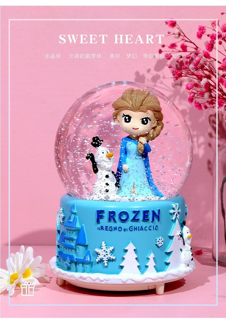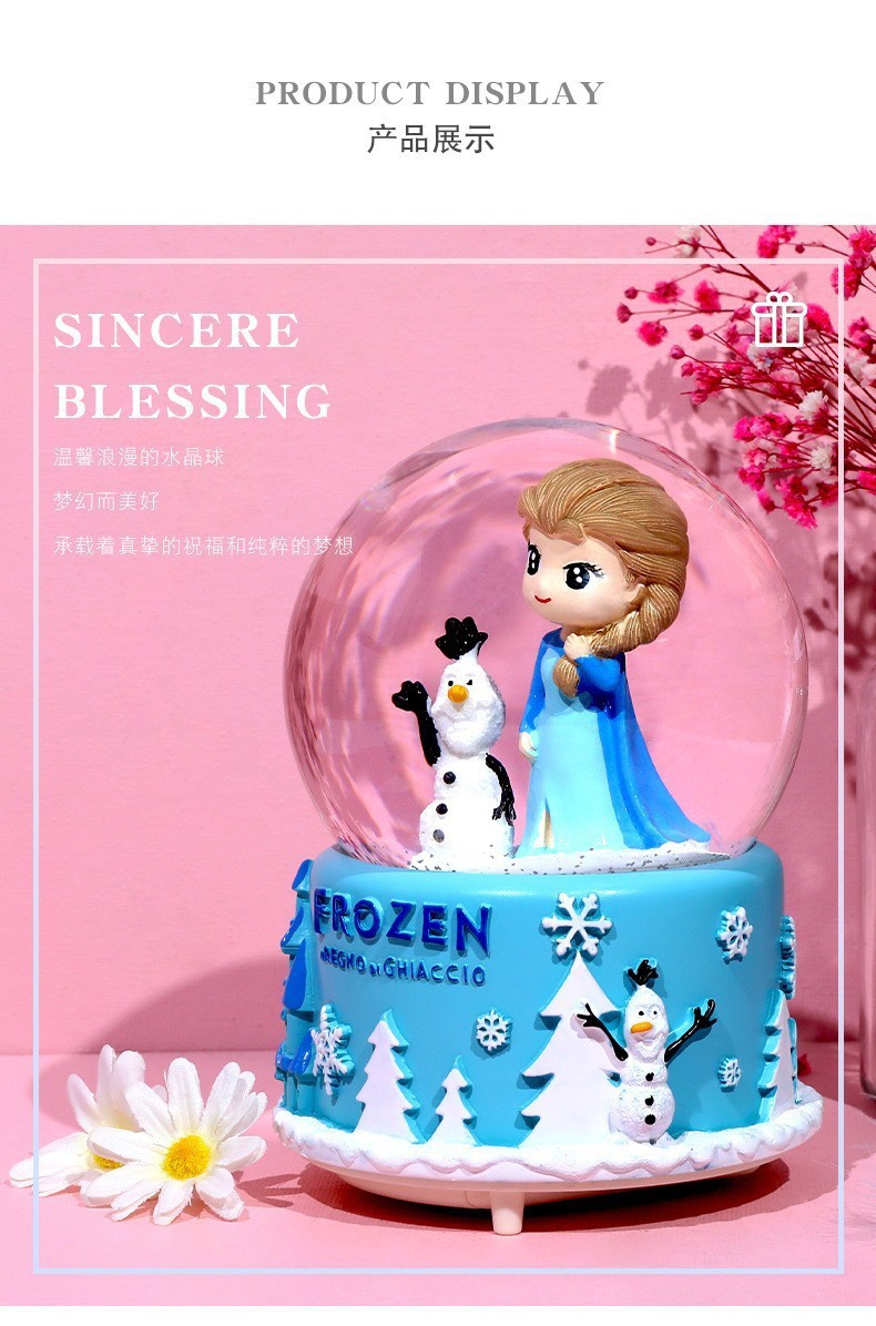 홈 크리 에이 티브 프린세스 엘사 뮤직 박스 크리스탈 볼 수지 공예 장식품 자동 눈 회전 공장 용품스토어 가기