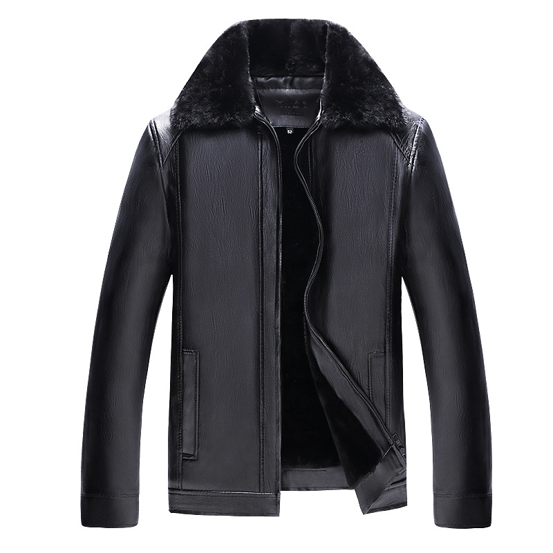 아빠 비즈니스 캐주얼 가죽 자켓을위한 중년 및 노인 puleather 재킷을위한 남성용 가죽 모피 칼라 이동식 기모 두꺼운 재킷