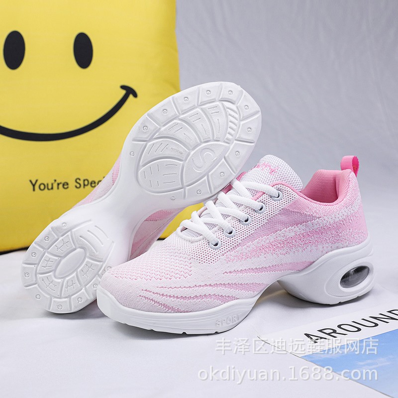 두꺼운 밑창 댄스 슈즈 여성의 2021 가을 플러스 사이즈 비행 짠 부드러운 밑창 스퀘어 댄스 슈즈 메쉬 스포츠 레저 여행 신발스토어 가기