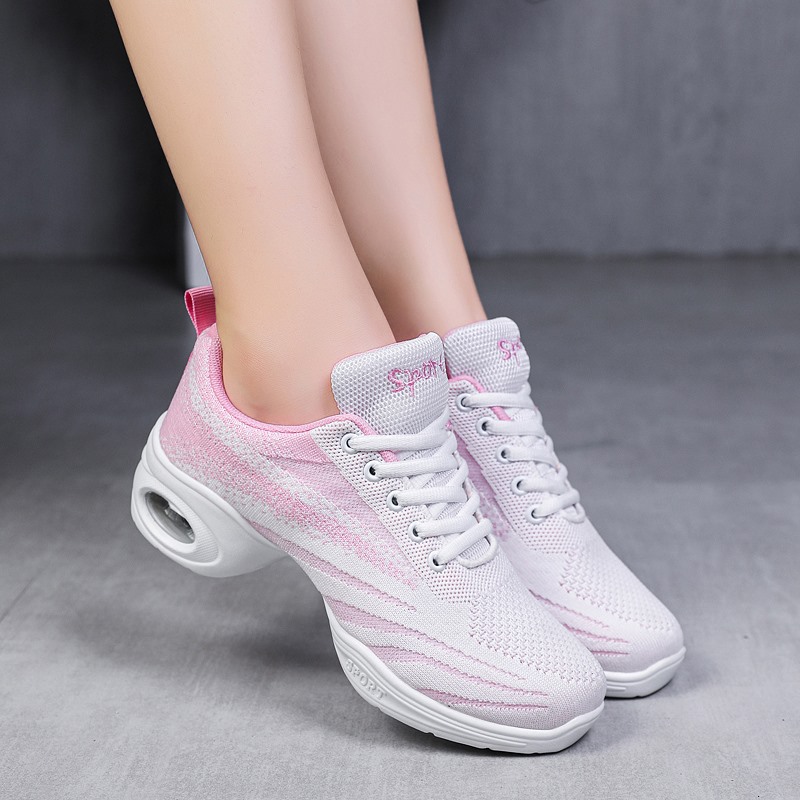 두꺼운 밑창 댄스 슈즈 여성의 2021 가을 플러스 사이즈 비행 짠 부드러운 밑창 스퀘어 댄스 슈즈 메쉬 스포츠 레저 여행 신발
