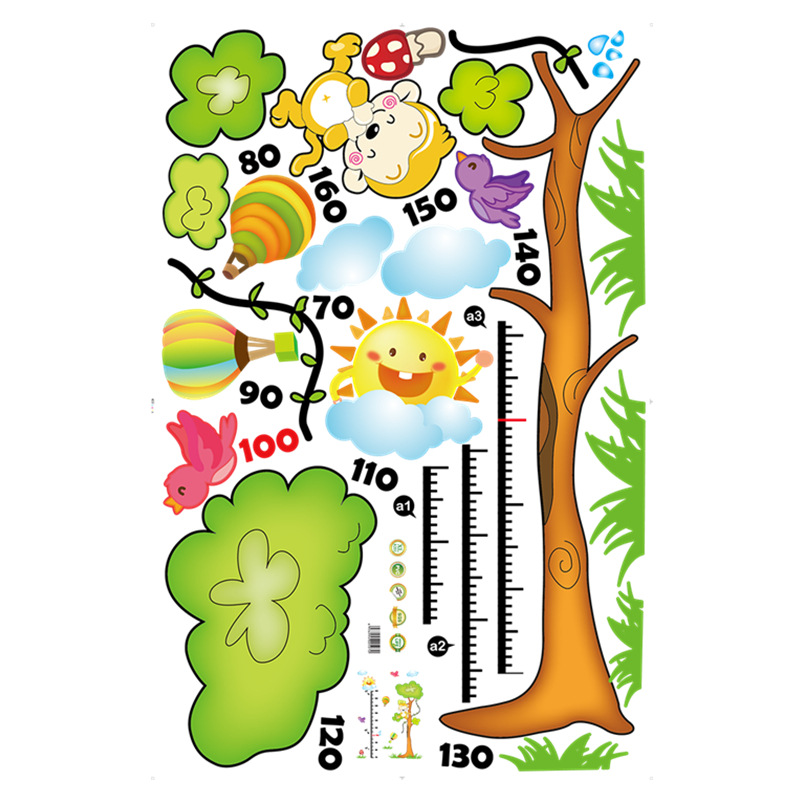 나무 타기 원숭이 만화 높이 벽 스티커 침실 거실 벽 높이 측정 자 자체 접착 스티커 XL8201