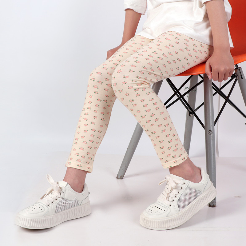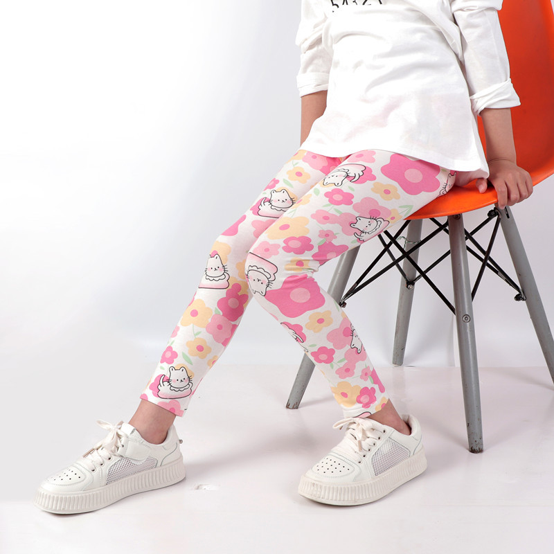 2024 년 여름 새로운 한국식 자른 어린이 바지 3-11 년 된 컬러 인쇄 소녀의 레깅스 얇은 외부 착용