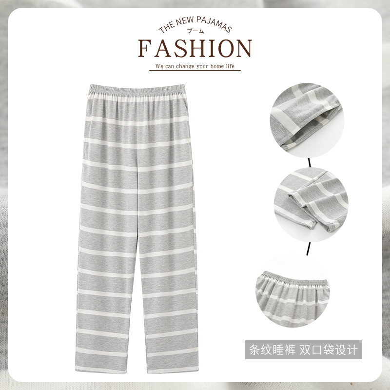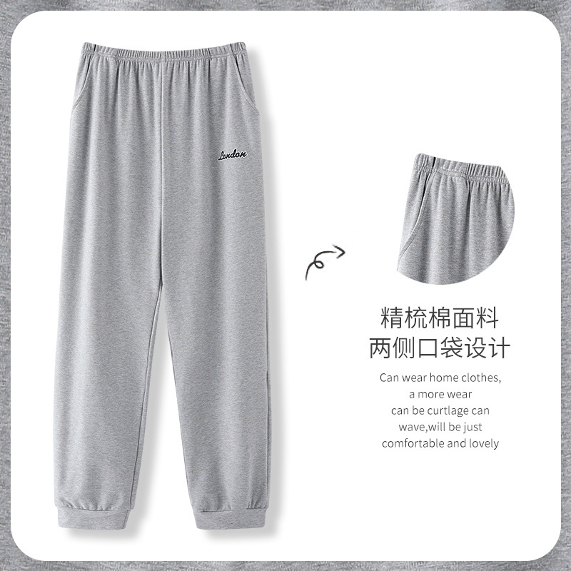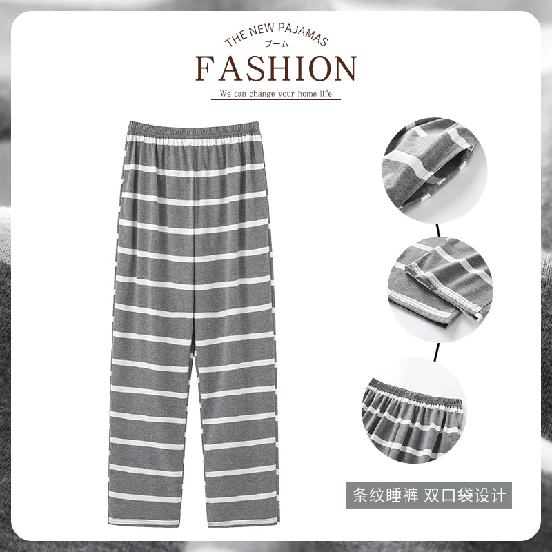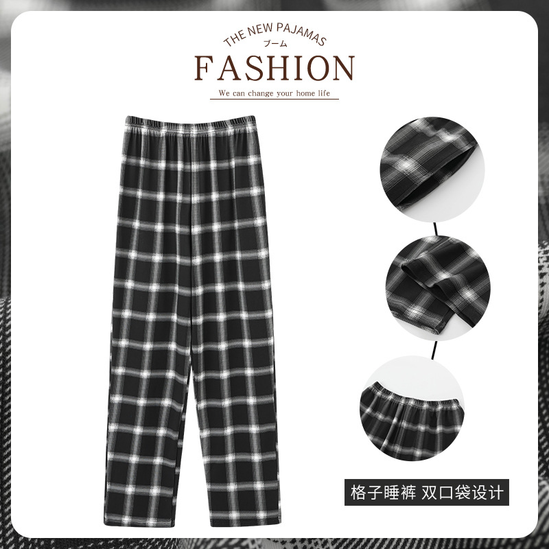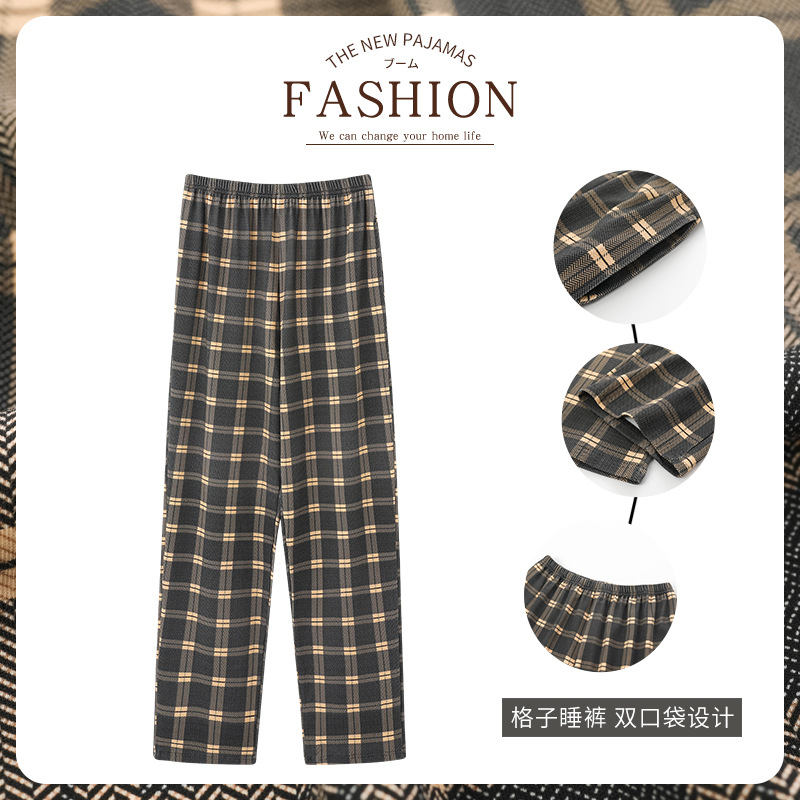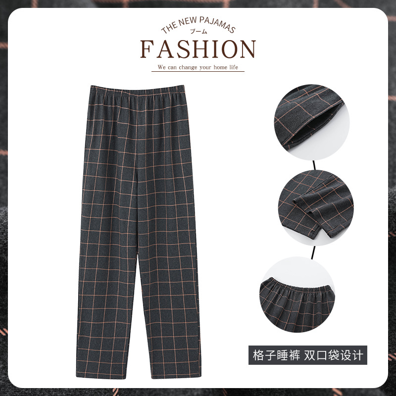Yanzhixiang 봄과 가을 새로운 소년 파자마 격자 무늬 바지 바지 니트 면 느슨한 플러스 사이즈 남자의 홈 바지스토어 가기