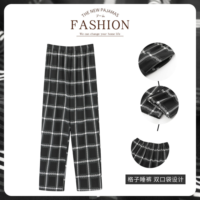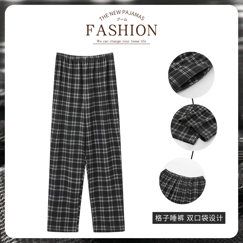 Yanzhixiang 봄과 가을 새로운 소년 파자마 격자 무늬 바지 바지 니트 면 느슨한 플러스 사이즈 남자의 홈 바지