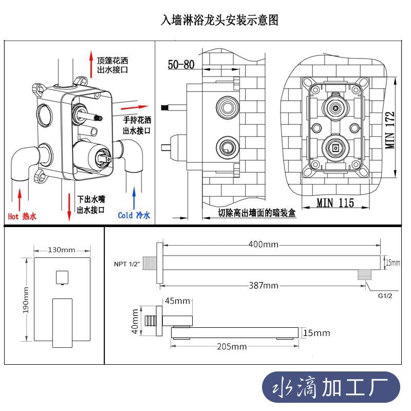 벽형 임베디드 박스 믹싱 밸브 캐노피 천장 샤워 세트 호텔 샤워 프로젝트에 내장 된 은폐 샤워 헤드스토어 가기