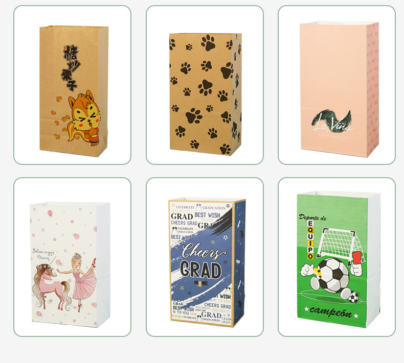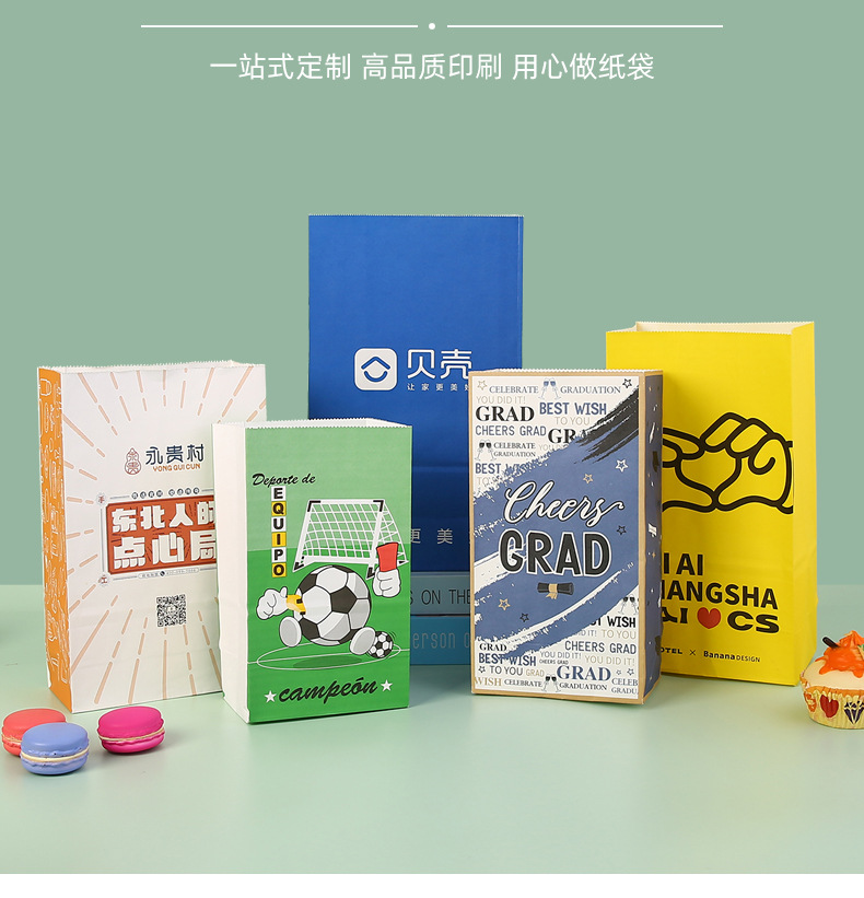 사각 바닥 크래프트 종이 가방 필름 테이크 아웃 포장 가방 스낵 식품 종이 가방 기름 방지 종이 가방 맞춤형 국경스토어 가기